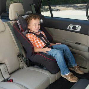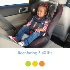This extended use convertible car seat keeps your child safely in the rear-facing position from 5 to 40 pounds and includes a removable body pillow to give a smaller baby a snug fit. It can also be used in the forward-facing position for kids 22-50 pounds. In both rear and forward-facing positions, the easy-to-use headrest and harness adjust quickly and at the same time with one simple movement. There s no need to uninstall the seat or rethread the straps. When your child is ready, remove the harness to easily convert the Easy Elite to a belt-positioning booster for big kids up to 80 pounds. Each stage provides Side Impact Protection to keep your child safer during the ride.