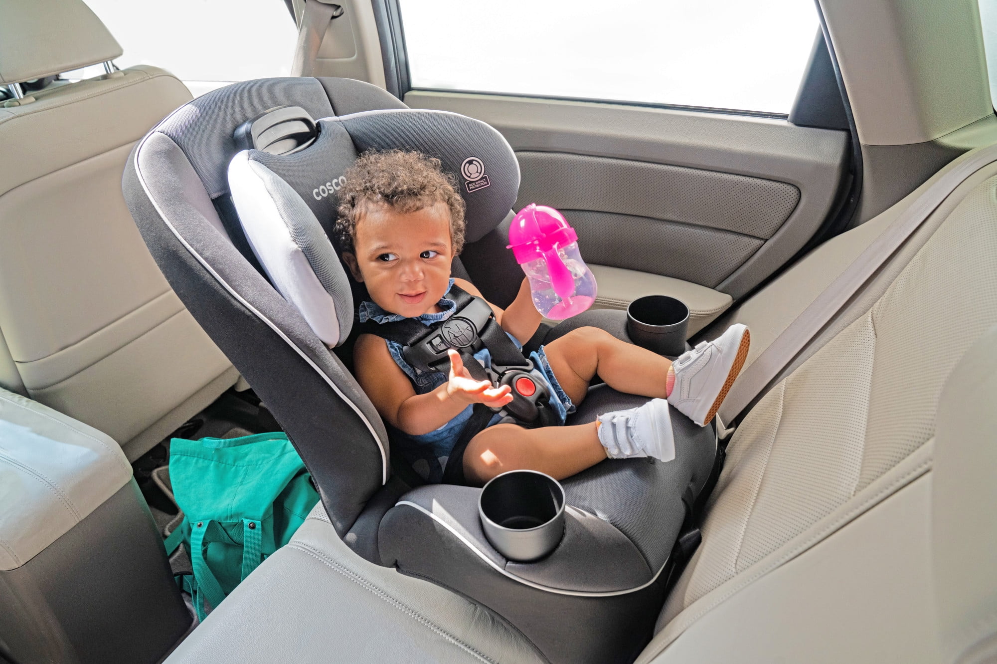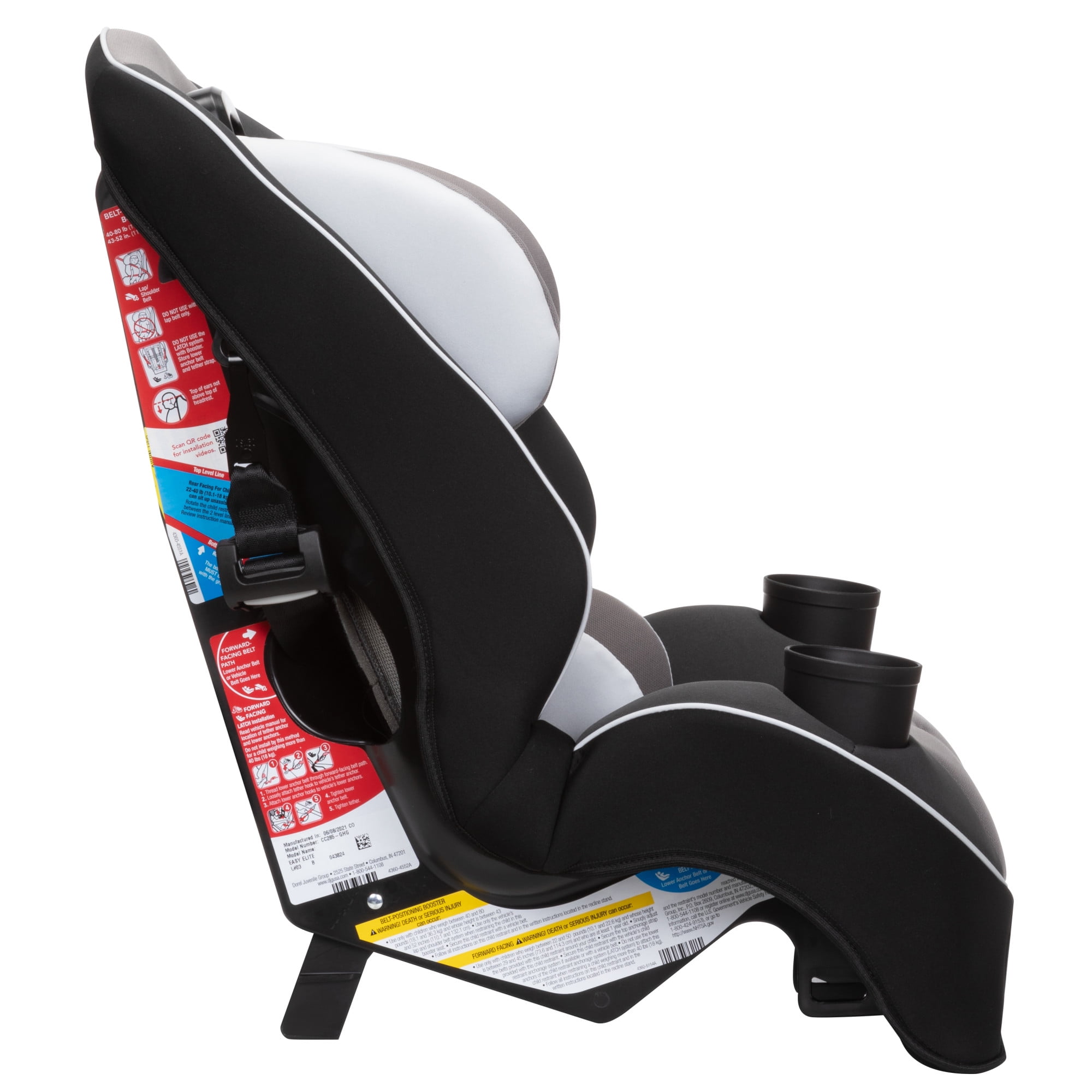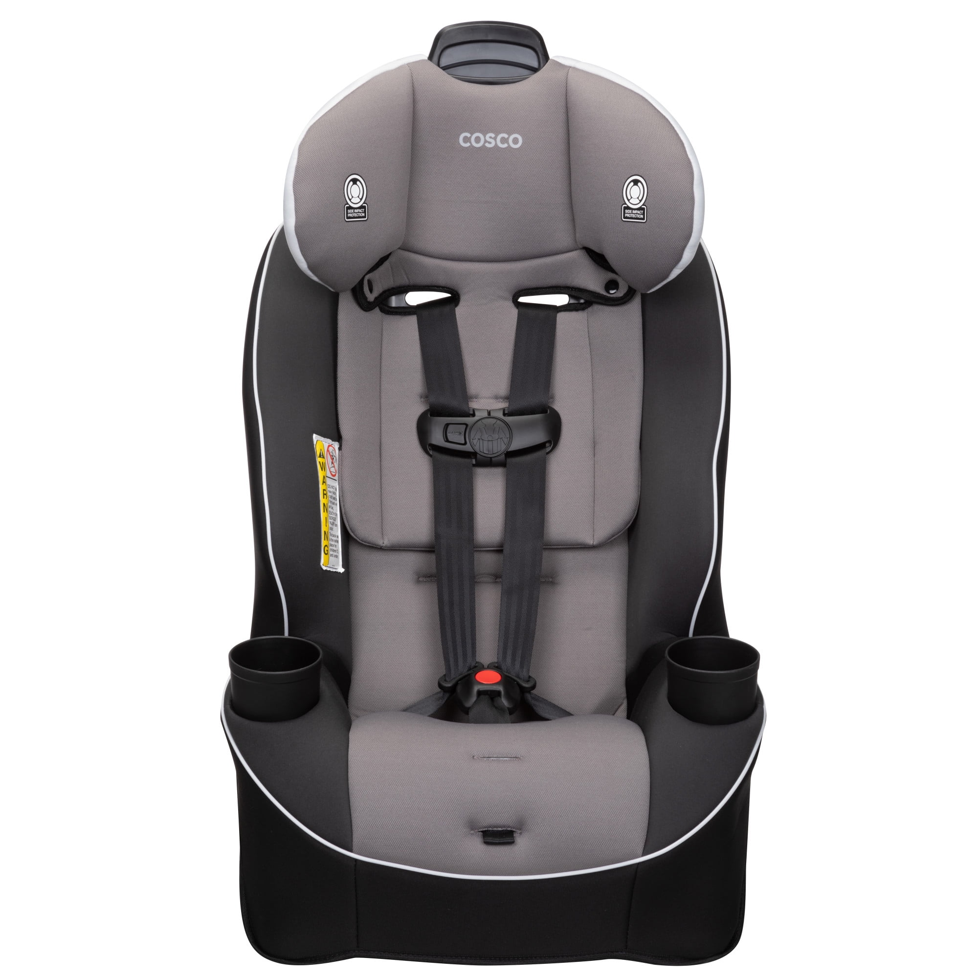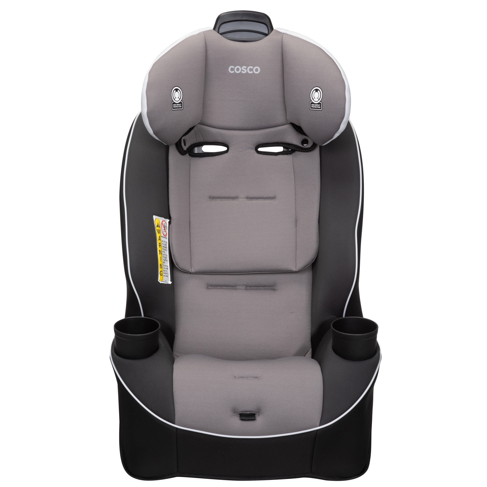 Cosco Kids™ makes choosing the right car seat simple! The Easy Elite All-in-One car seat has your family covered from rear-facing baby to big kid booster with a range of 5-80 pounds. (Rear-facing; 5–40 lbs., Forward-facing; 30–50 lbs., Belt-positioning; 40–80 lbs.) The Easy Elite also adapts to your growing family with the ability to fit three seats across the back of most cars. This all-in-one convertible car seat keeps your child safely in the rear-facing position from 5 to 40 pounds and includes a removable body pillow to give a smaller baby a snug fit. It can also be used in the forward-facing position for kids 30 to 50 pounds. In both rear and forward-facing positions, the easy-to-use headrest and harness adjust quickly and easily with one hand. There’s no need to uninstall the seat or rethread the straps. When your child is ready, remove the harness to easily convert the Easy Elite to a belt-positioning booster for big kids up to 80 pounds. Each stage provides Side Impact Protection to keep your child safer during the ride. The Easy Elite car seat is easy to care for too. With kids in the car, messes happen. Thanks to the easy-to-clean car seat pad, there’s no need to stress. The pad comes in a wide range of styles and colors, all of which remove from the seat and are both machine washable and dryer safe.