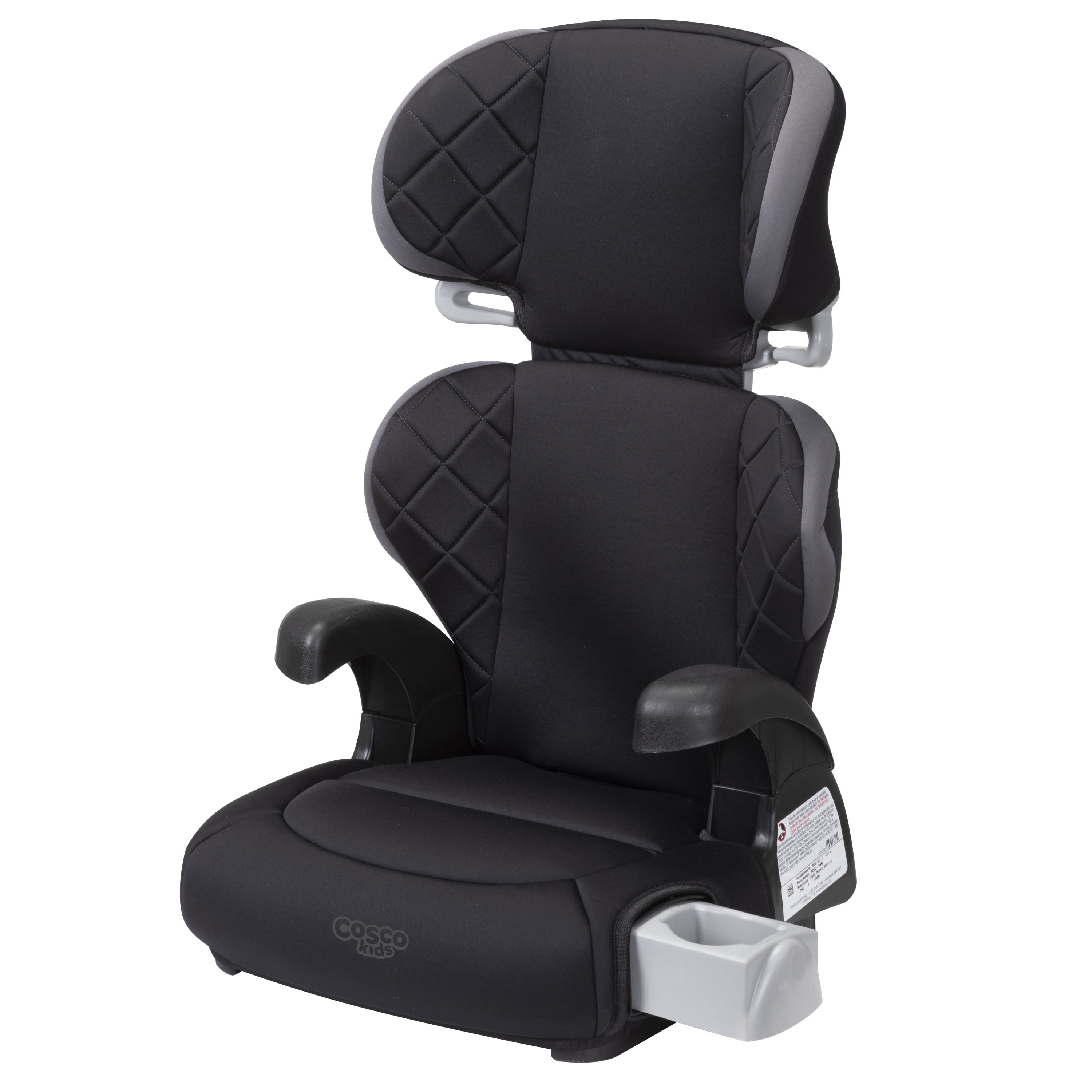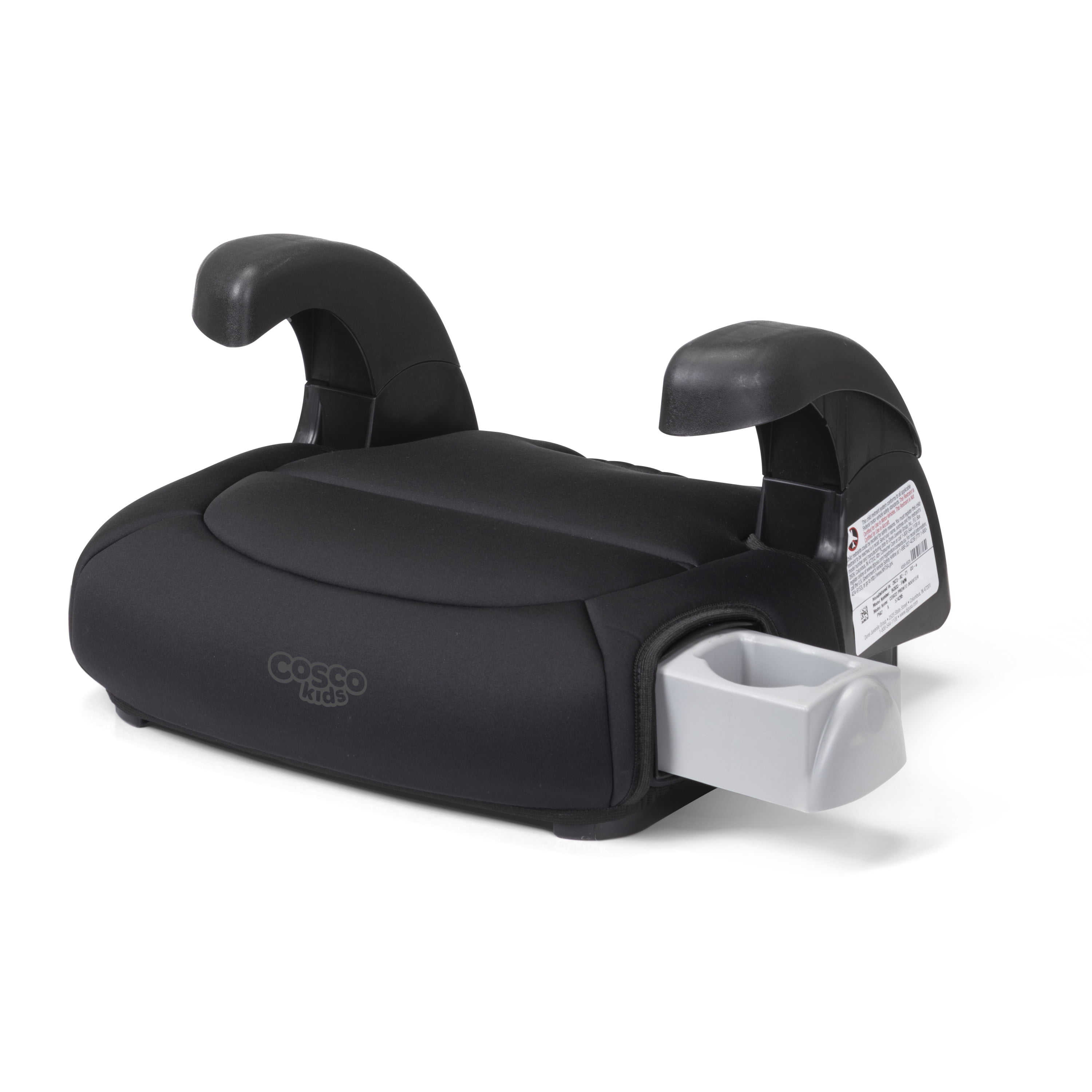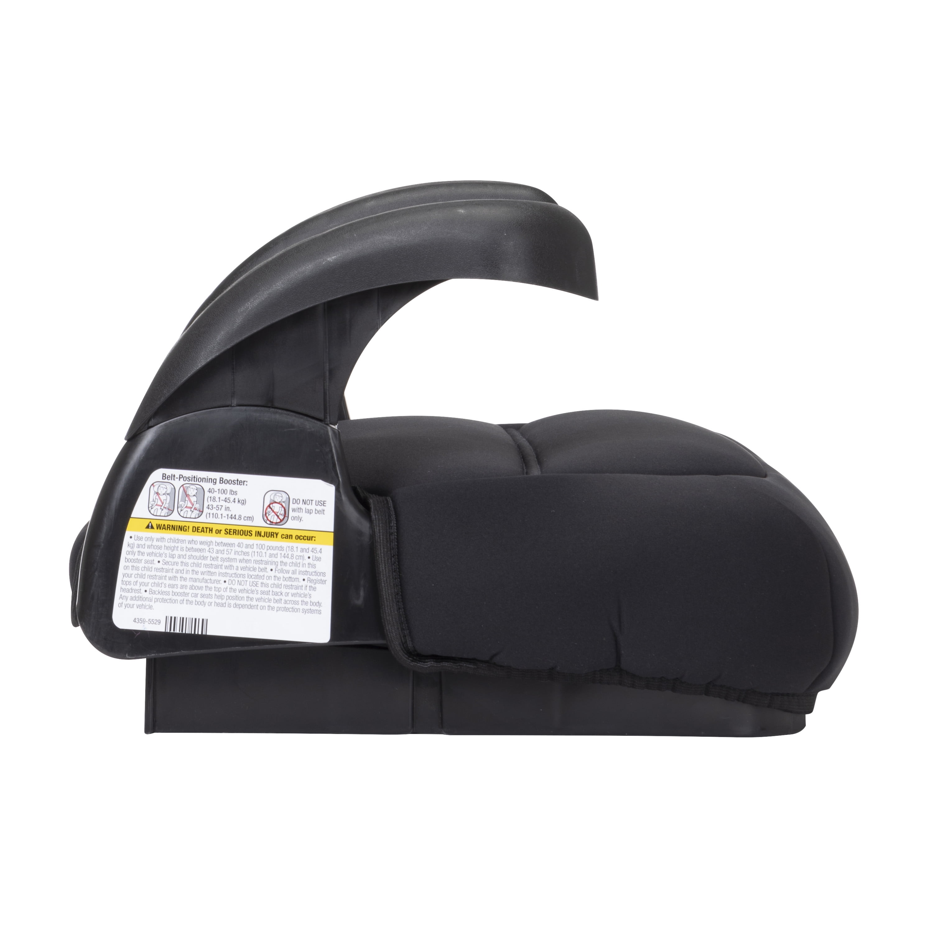 Belt-positioning booster: 40–100 lbs. 2 seats in 1: easily converts to a backless booster Washable seat pad Adjustable headrest grows with your child Integrated slide-out cup holder Shoulder belt guides Exceeds federal safety standards Headrest pillow for additional comfort