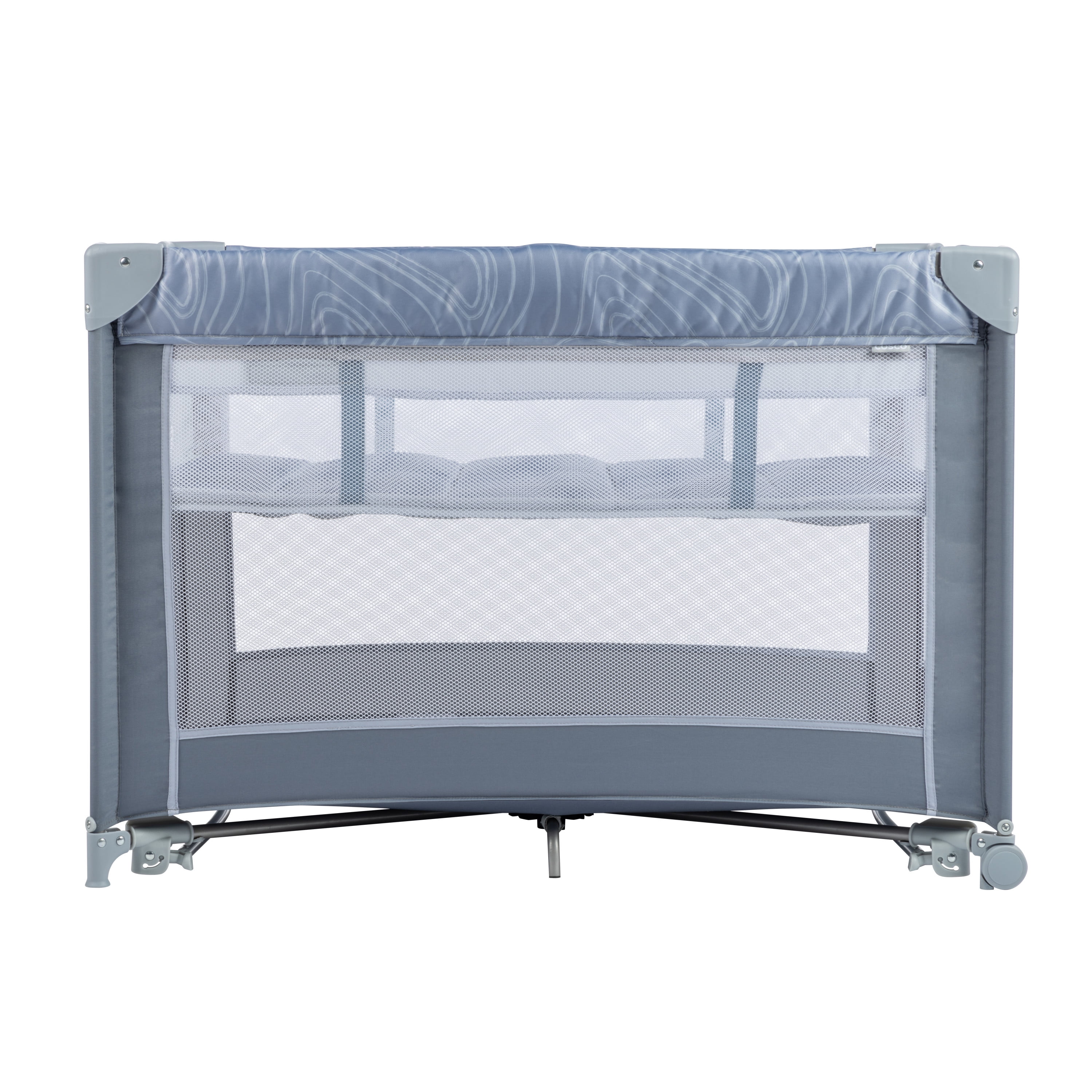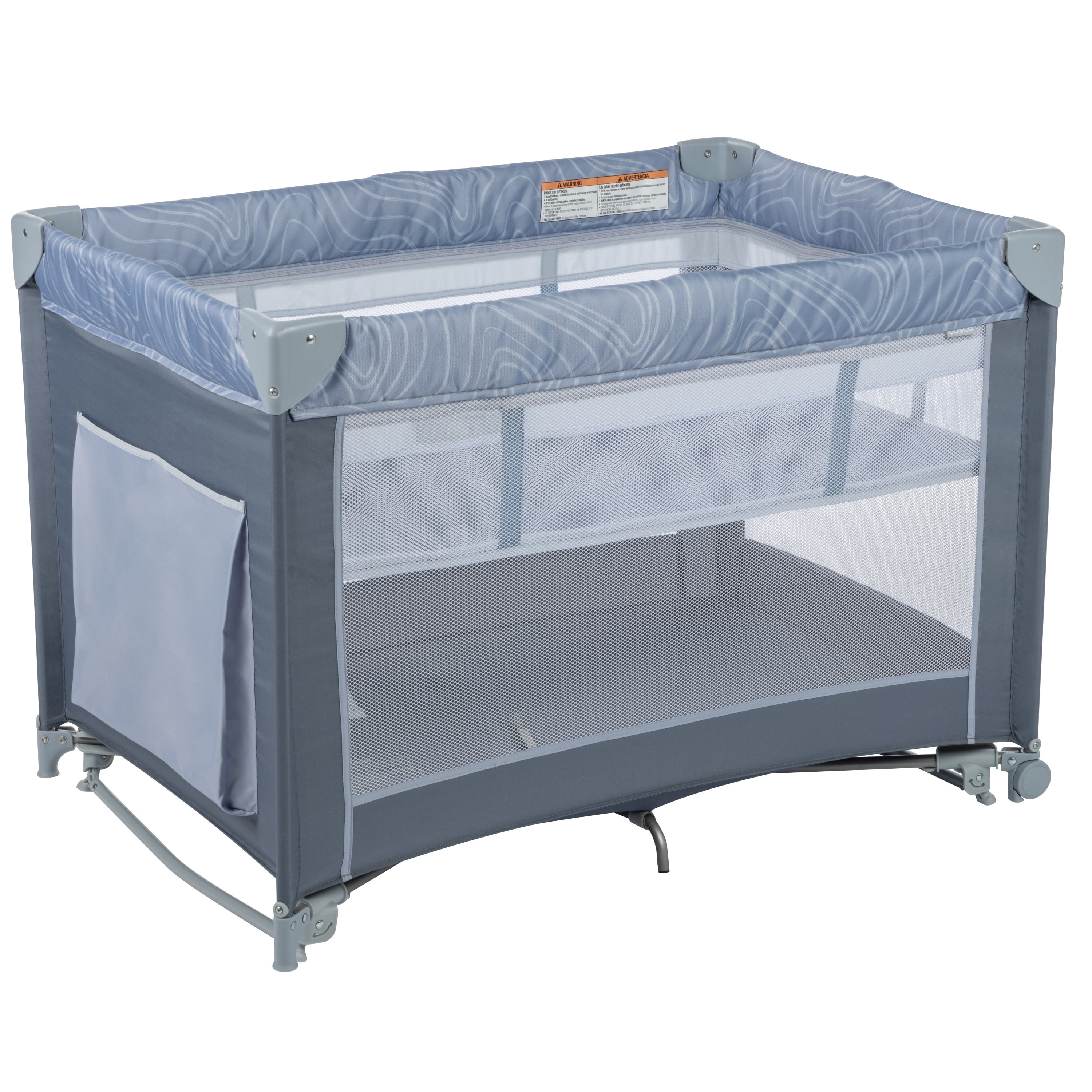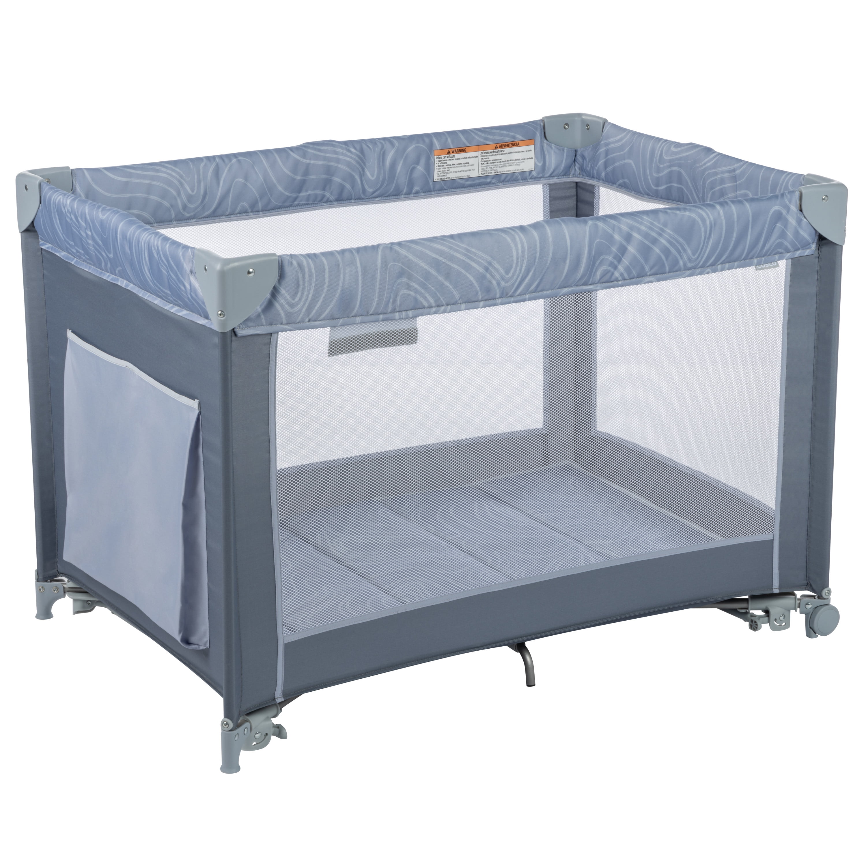 Introducing Cosco Kids™ Organic Waves collection. Each piece in this collection is designed with fabrics made using recycled materials. With the Cosco Kids™ Rocking Bassinet with Play Yard, your little one will rest easy at home or on the go. The cozy bassinet has two modes: rocking and stationary. Gently lull your baby to sleep in rocking mode. Or choose to secure in place for stationary mode before laying baby down. When rest time is over, easily converts from bassinet to play yard, so baby can explore in a safe space. The breathable, see-through mesh sides offer increased air flow, and let you easily check in on your little one. And when you’re headed out for the weekend, the bassinet and play yard folds compactly and stores in the included travel bag.