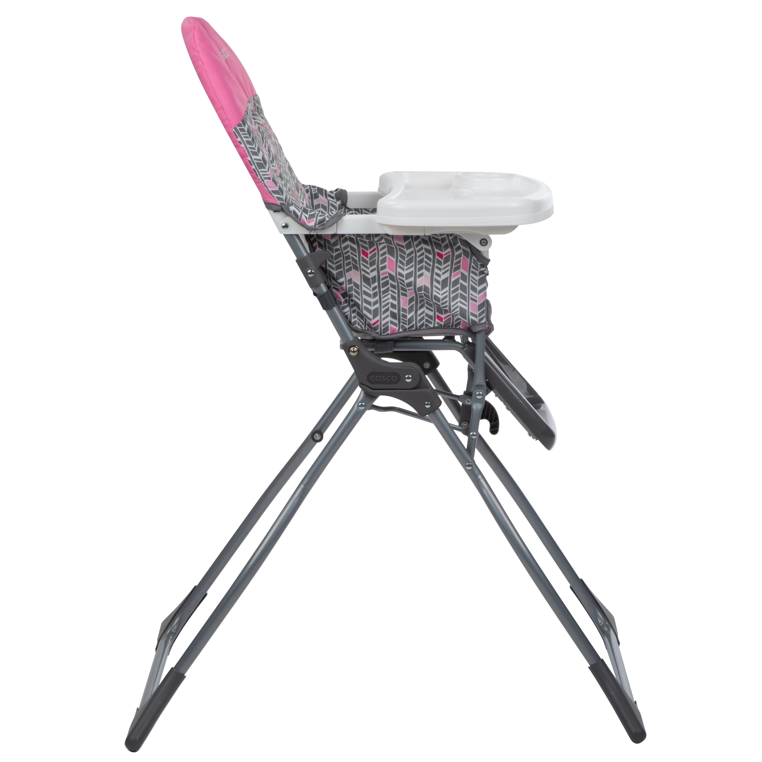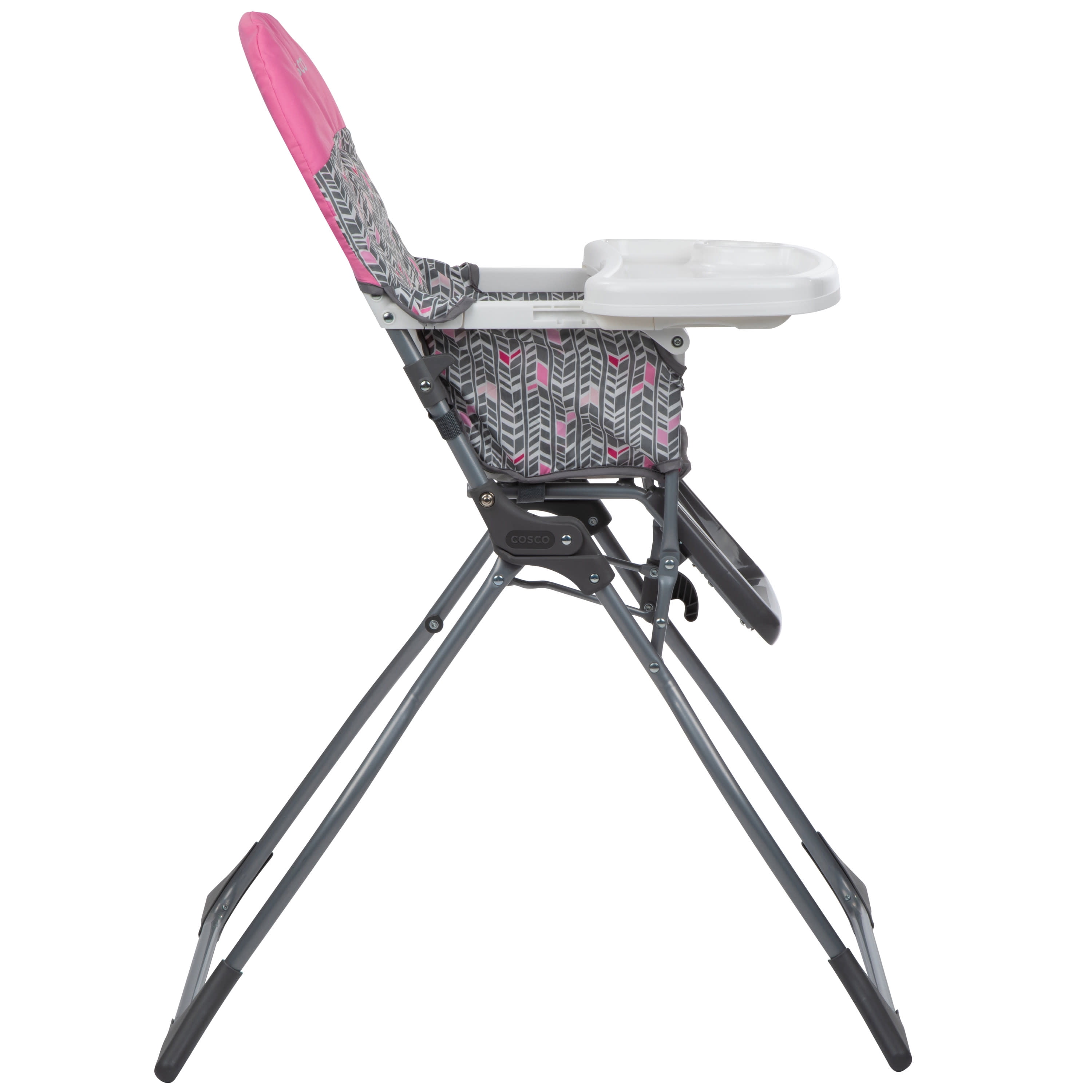 Cosco Kids Simple Fold Full Size High Chair with Adjustable Tray, Lula Folds flat and stands on its own, making it easy to hide away or take on the go Easy wipe seat makes all that baby goo simple to clean No-nonsense design sets up in just seconds Full size, 3-position adjustable tray with built in cup holder Comfortable leg rest for little feet For use from 6 months and up to 50 pounds, the 3-point harness keeps your baby secure as well as your growing toddler Assembled Weight: 10.8 lb
