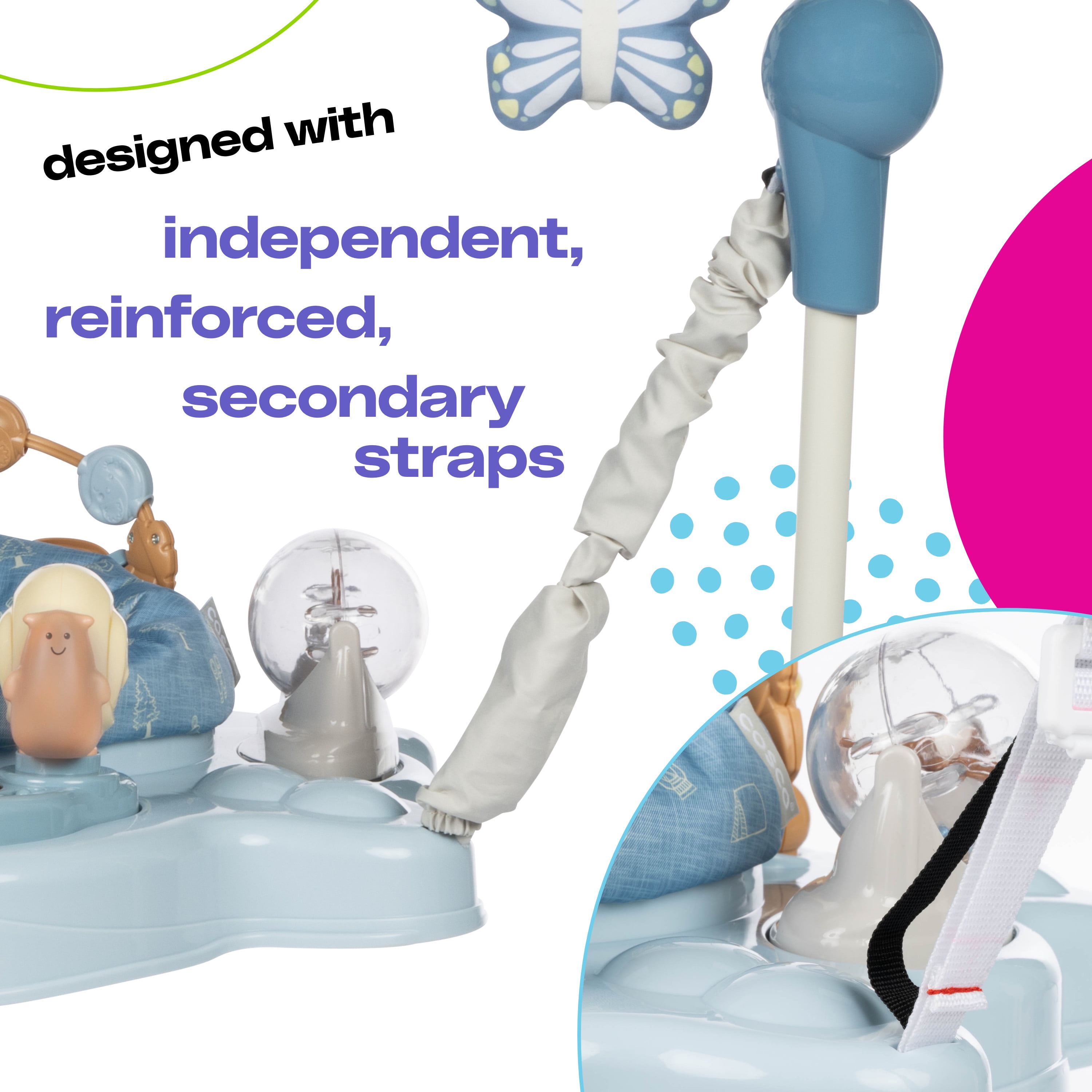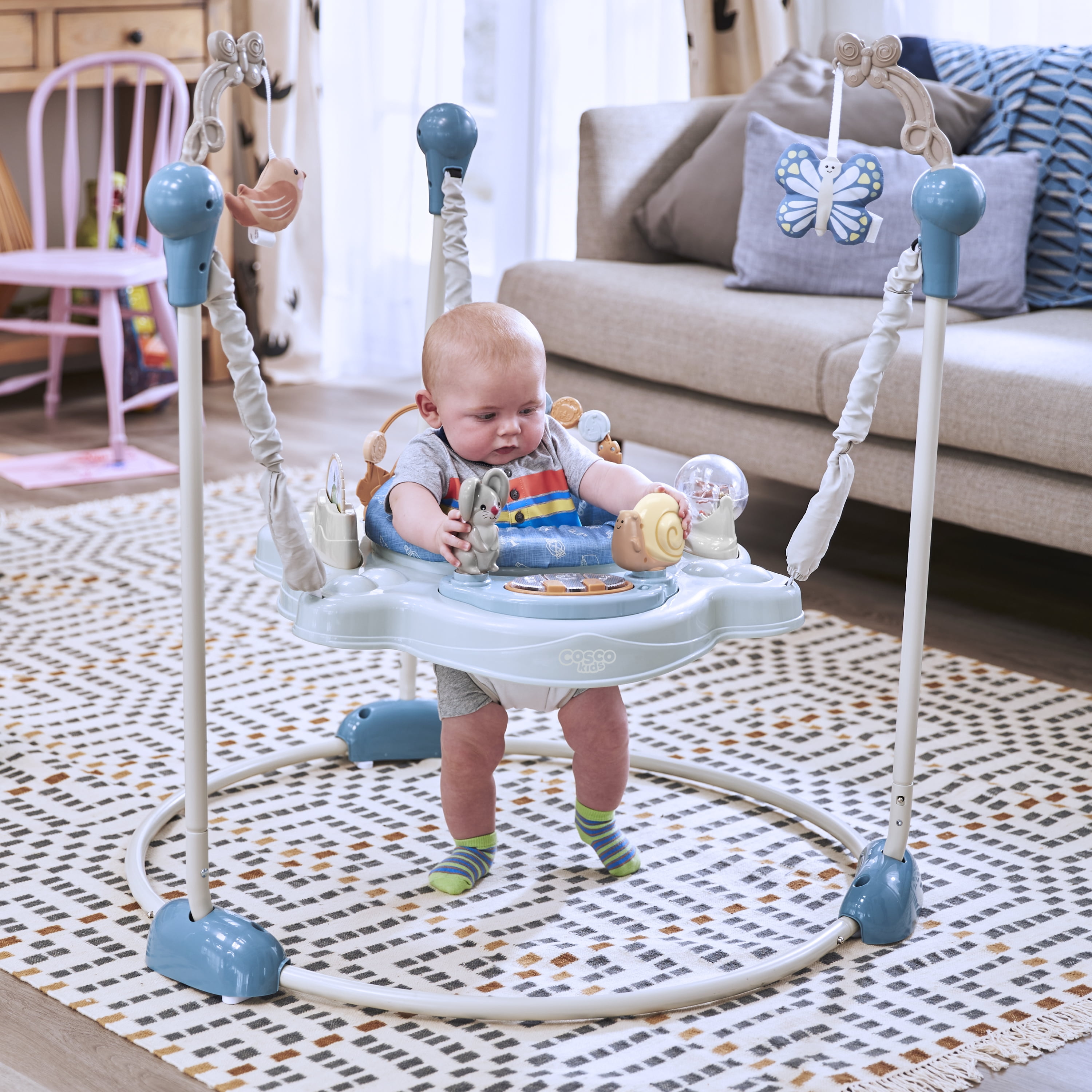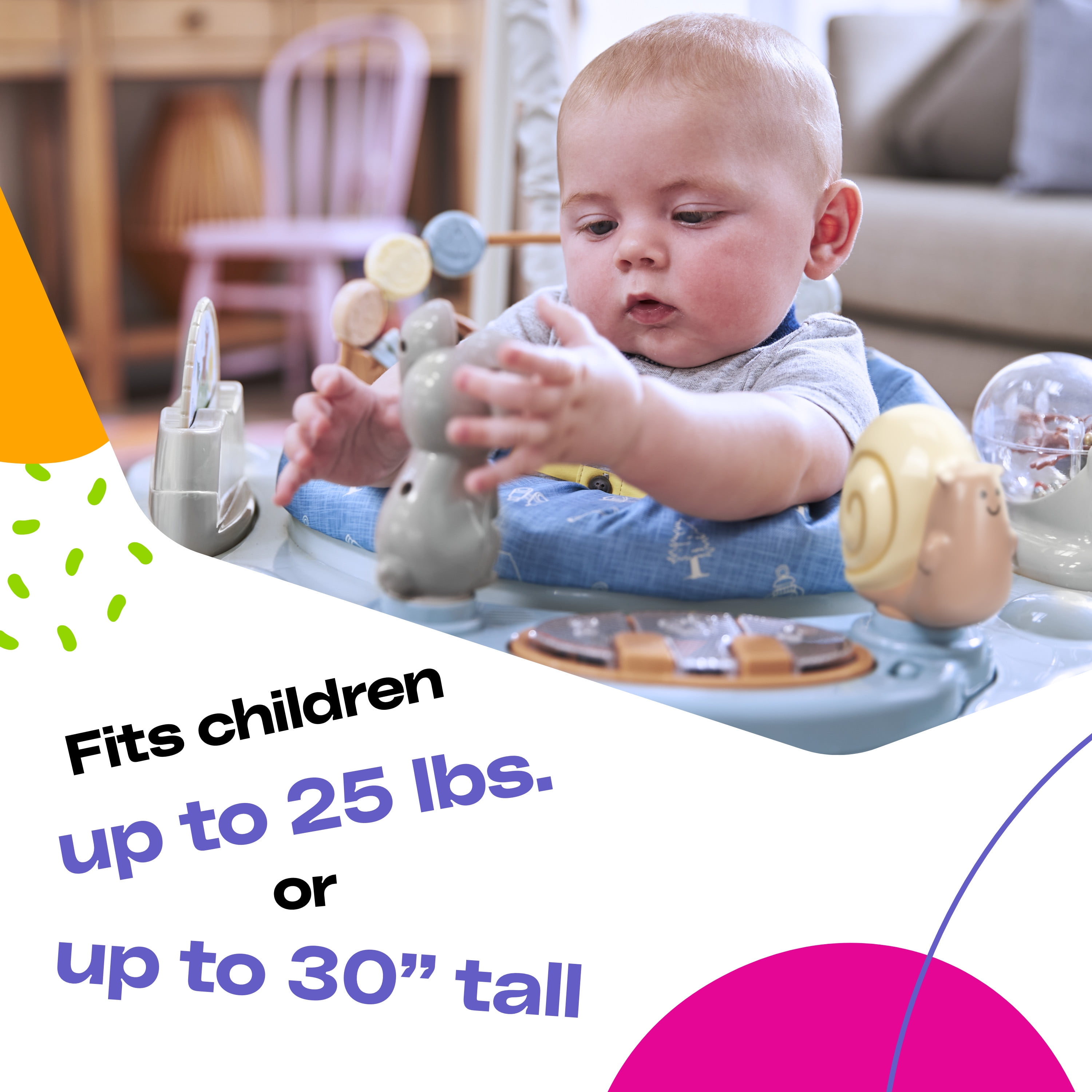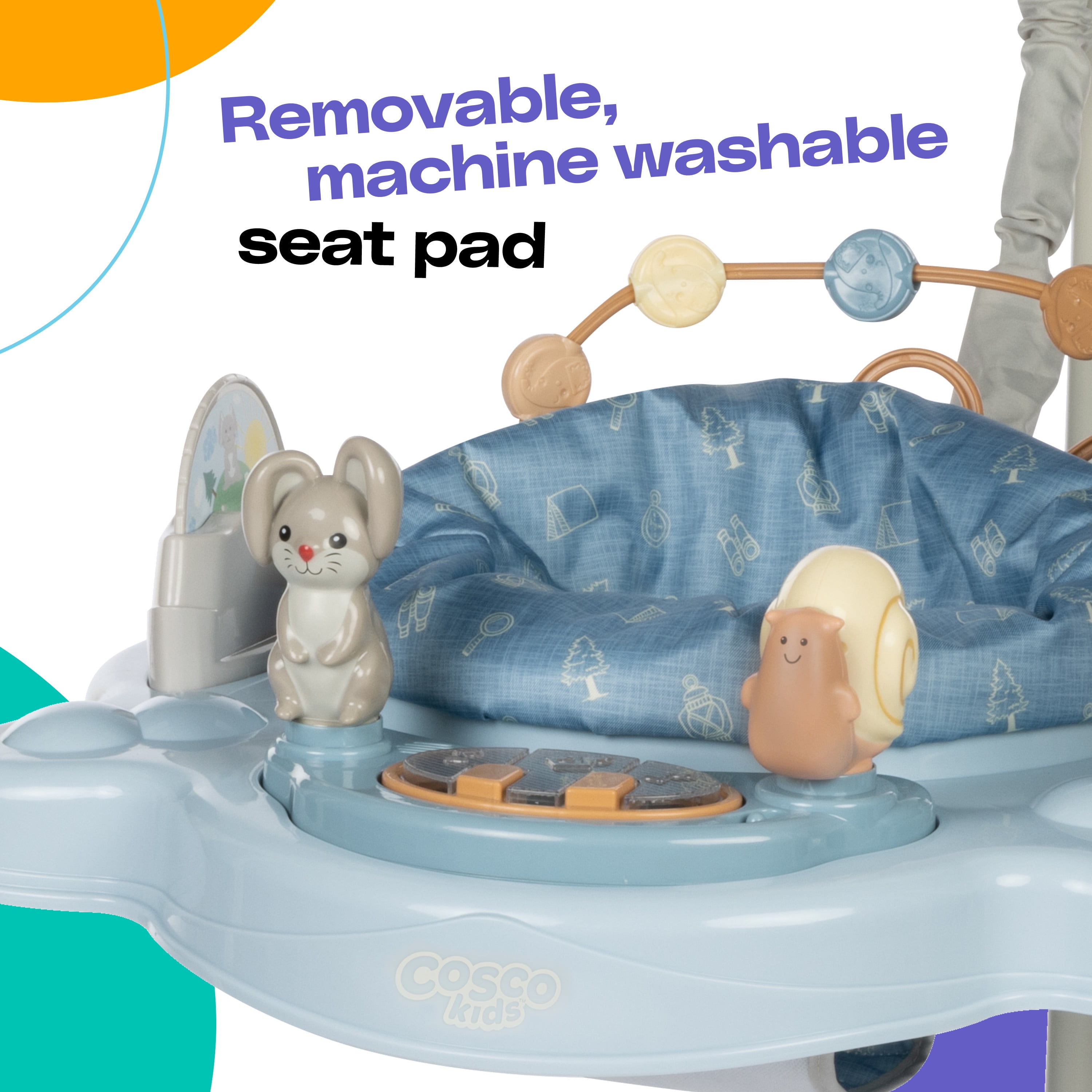 Cosco Kids Twirl-and-Bounce Activity Center, Forest Friends 3-in-1 play center, bouncer, and jumper Legs detach for compact storage Built-in toys with music, lights, and sounds Seat spins 360° 3-position adjustable height Removable, machine-washable seat Assembled Dimensions: 34.45 in x 34.45 in x 38.39 in