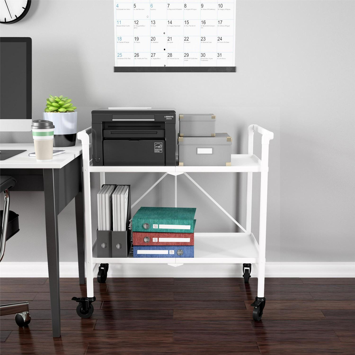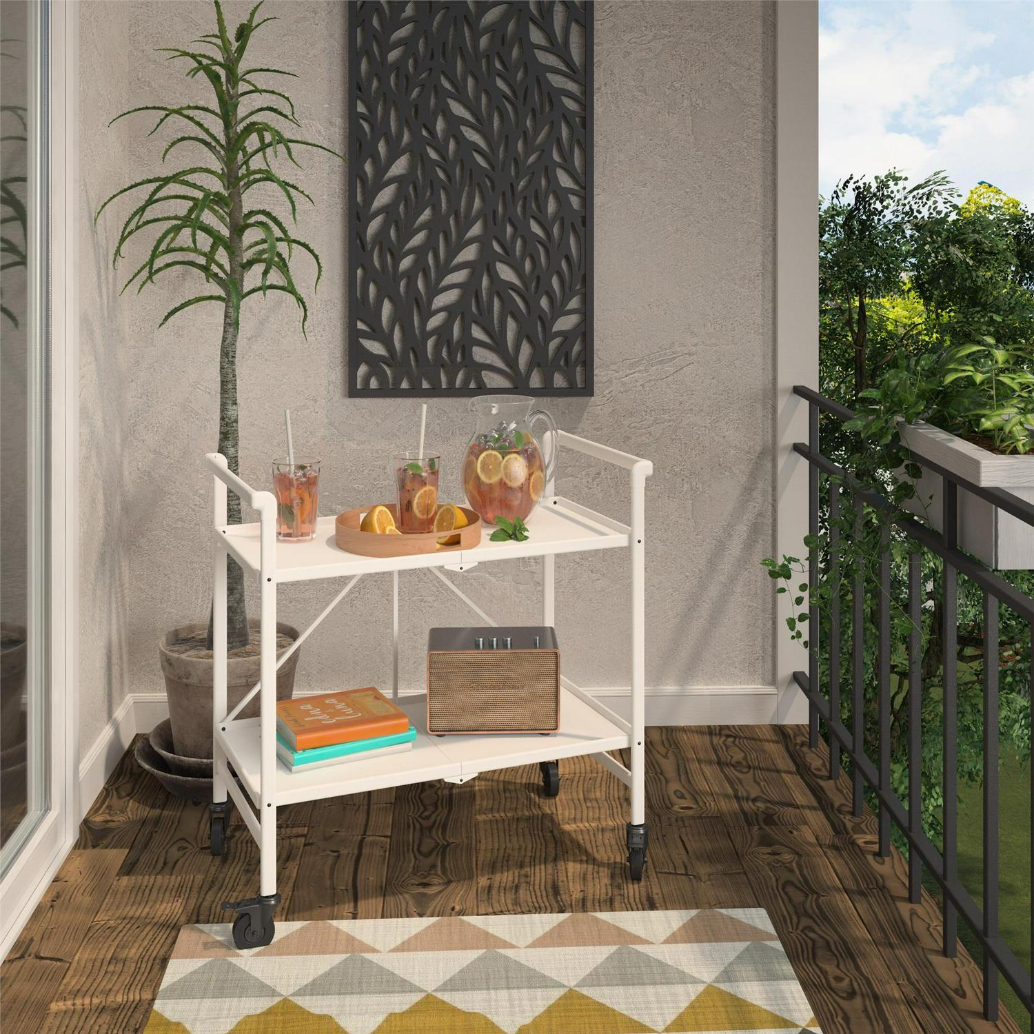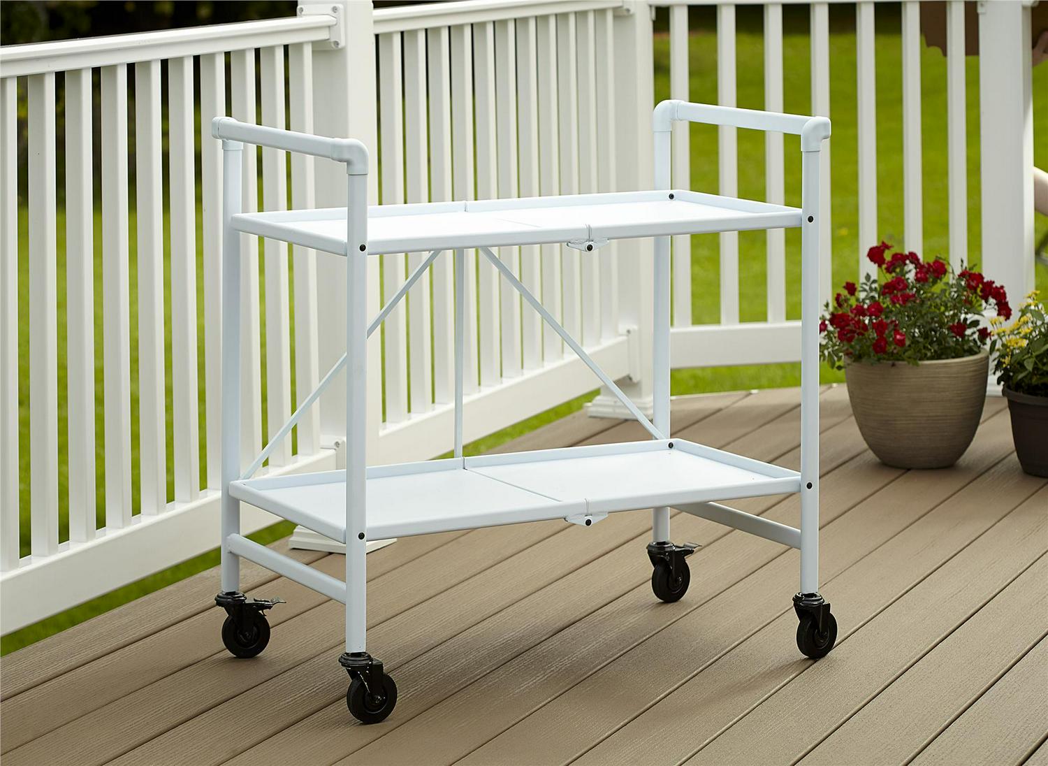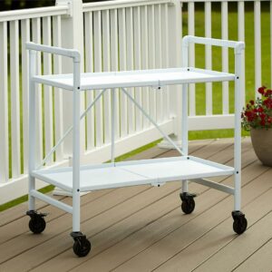 COSCO Outdoor Living(tm) Outdoor and Indoor Folding Serving Cart with Wheels and 2 Shelves, White