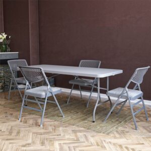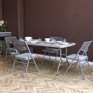 – COMPACT FOLD with NESTING DESIGN: Chairs fold to a 5 inch depth and nest together to take up less space for easy storage