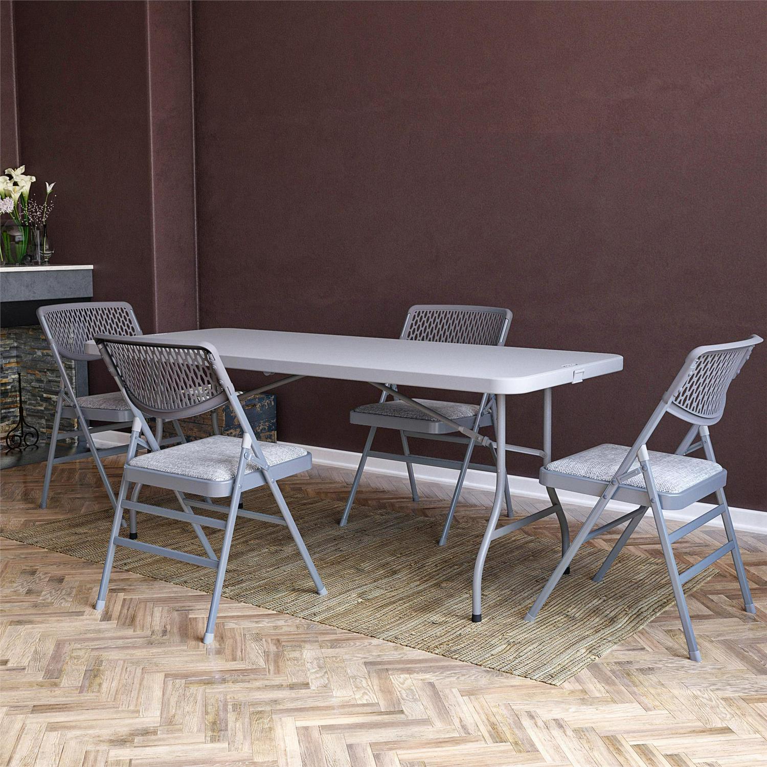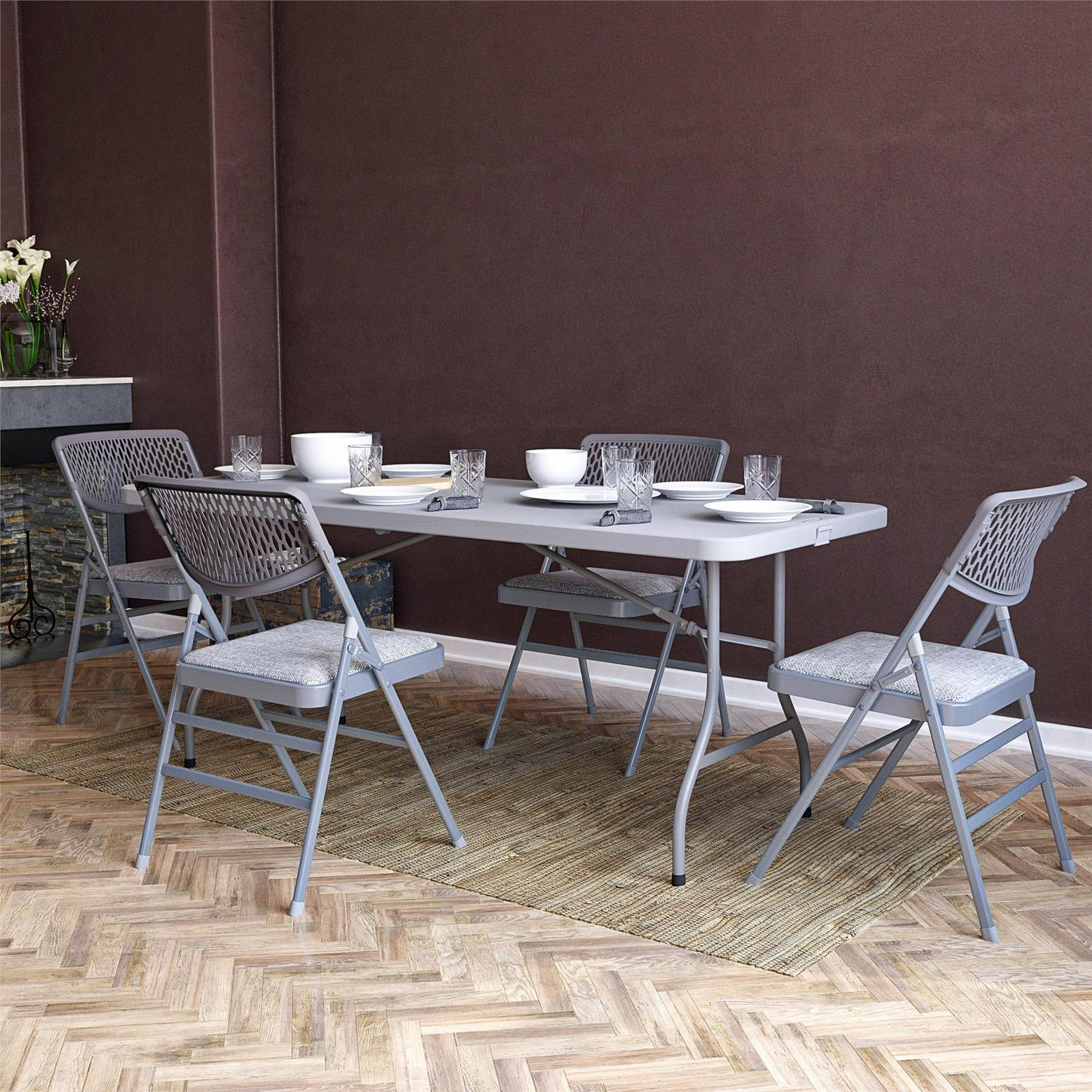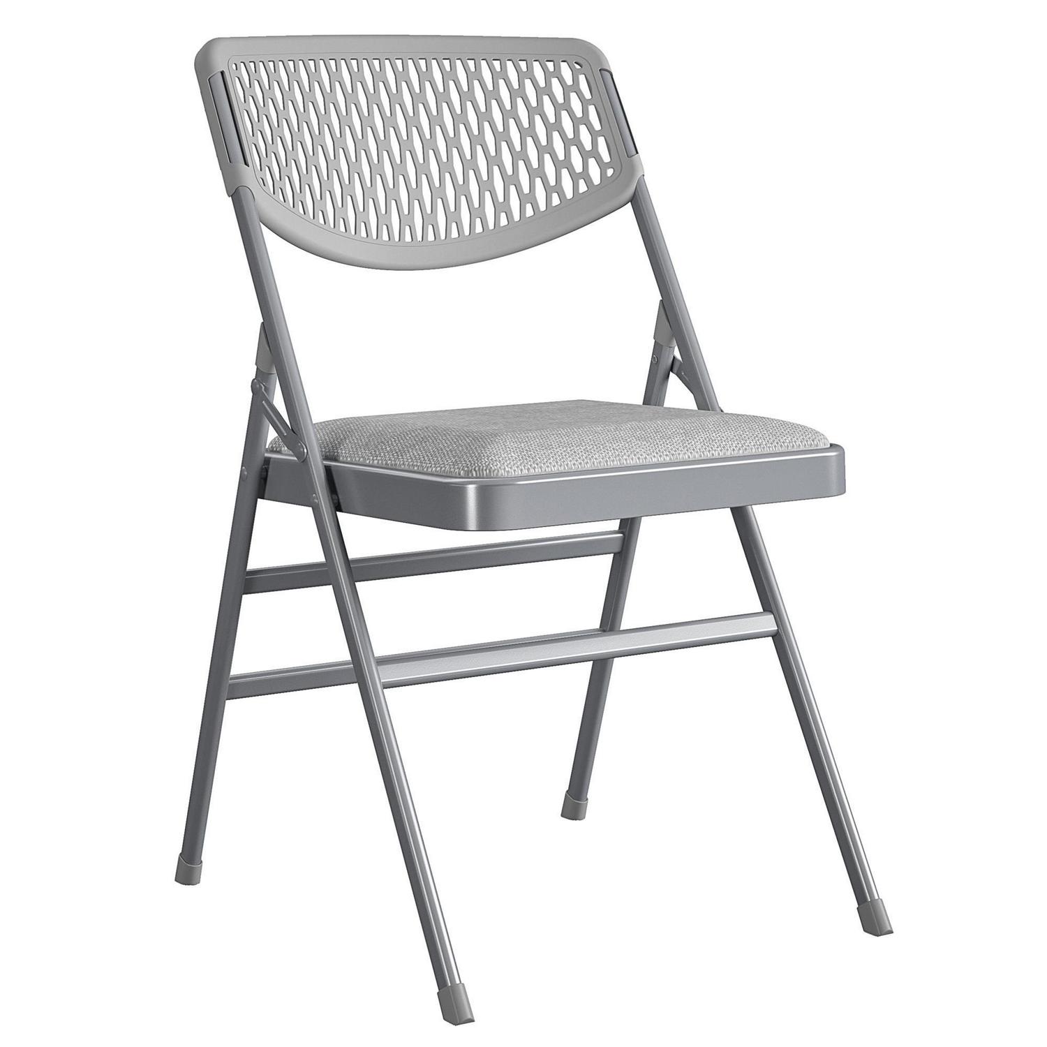 COSCO Ultra Comfort Commercial XL Premium Fabric Padded Folding Chair, ANSI/BIFMA 300 lb. Weight Rating, Triple Braced, Gray, 4-Pack
