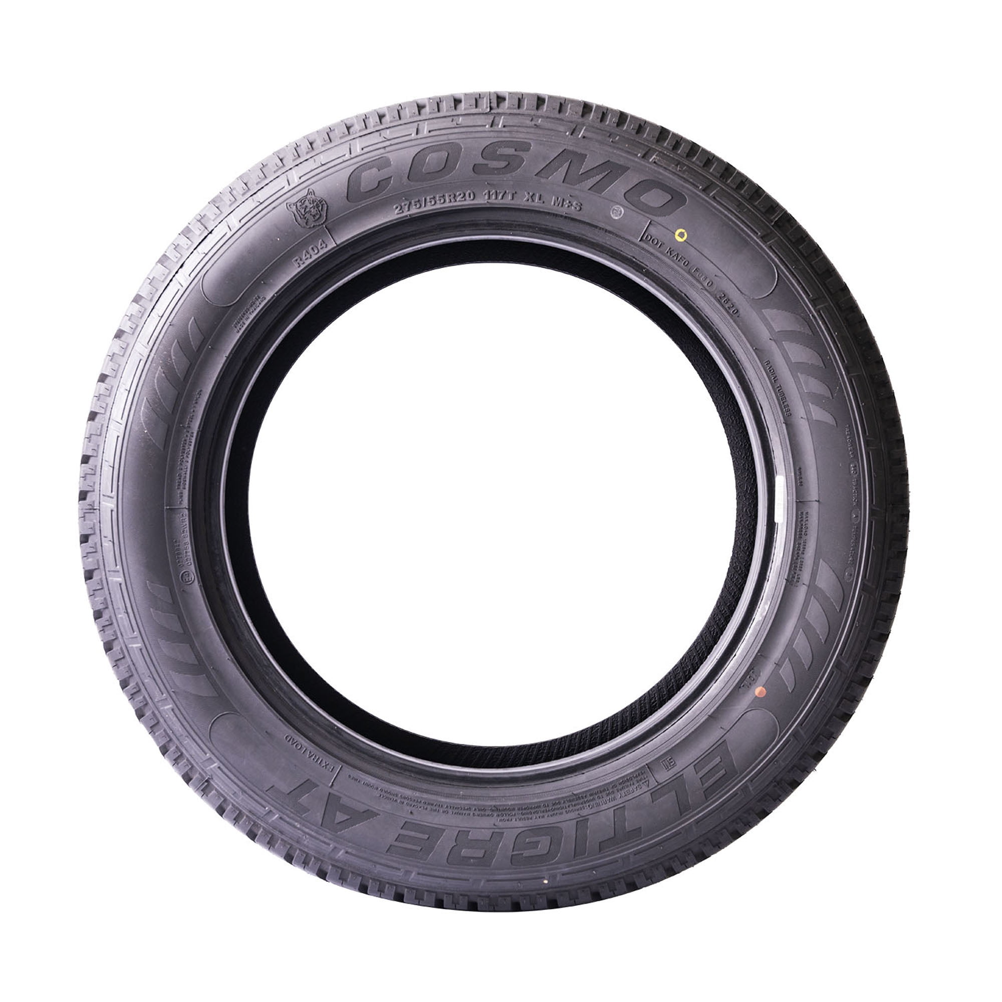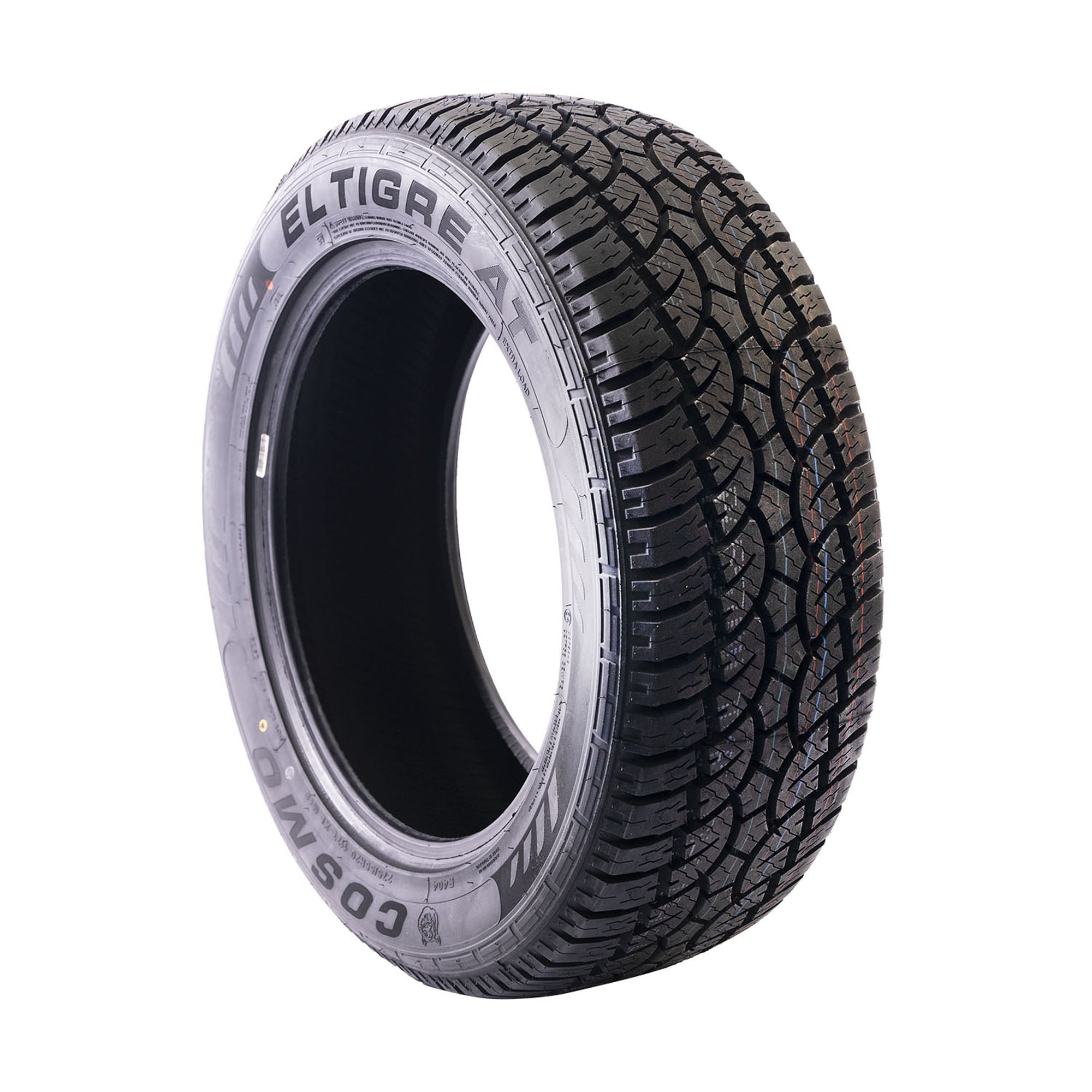 Attention! Due to the size of the tires, Packages might be SEPARATED in the courier facility and not be DELIVERED on the SAME DAY, even though we do ship them together. Tracking information can be checked by logging on to the courier website with the master tracking number you will receive via email. For example, you can receive 3 tires in one day and the 4th one the next day or the day after, or one tire in one day and the second one day after. We understand that this is a big inconvenience for our buyers, however, this is ABSOLUTELY out of our control. Cosmo El Tigre AT FEATURES AND BENEFITS FREE ROAD HAZARD WARRANTY Enhanced controllability All terrain traction Longer lasting tread life OVERVIEW The Cosmo El Tigre AT is an all terrain, all season tire manufactured for SUVs and light trucks. Cosmo offers a 55,000 mile treadwear warranty with this model. The staggered block placement along the tread area increases the versatile terrain traction. These tread elements ensure the tires surface traction, boosting the soft, loose and uneven terrain gripping power. This results in the tires deep mud and loose dirt performance, guaranteeing a constant forward motion. The tread elements also keep the footprint clean, by eliminating mud, snow, and rocks stuck between the tread elements. This prevents mud and snow from blocking the surface contact, while stone retention is effectively resisted during the performance. The models all weather traction is also guaranteed. The tread elements and the all season compound work together to increase the dry, wet, and winter weather grip. The detailed tread elements allow the tire to boost the grip on the road surface with extra biting edges. The durable compound elements allow the tire to improve the rubber flexibility during the performance. During the tires on-road drive, the groove pattern disperses water and slush from the footprint in wet conditions. This results in the tires better hydroplaning resistance. The tread designs surface contact helps to upgrade the controllability. The ribbed block pattern ensures the tires surface and road contact at all times. As a result, the tire greatly improves the steering responsiveness and the driving stability. This promotes a faster and more precise response to the drivers commands, while structural stability enhances the driving stability. The shoulder block pattern enhances the cornering ability with the use of extra biting edges. The stronger internal structure improves the load handling ability. The tire does not deform under the load pressure, greatly improving the load capacity. The El Tigre AT also ensures a lengthened usability. The tread design and the durable compound increase the tread life length. The surface contact ensures even pressure circulation across the tread area, avoiding irregular wear formations. The stronger compound greatly improves the wear manner, reducing the tread wear rate. The slow and even wear boosts the tires service life. Manufacturers recommend changing tires every 10 years. As long as tires are properly stored before they are sold, the year of their manufacture will not shorten their service life.
