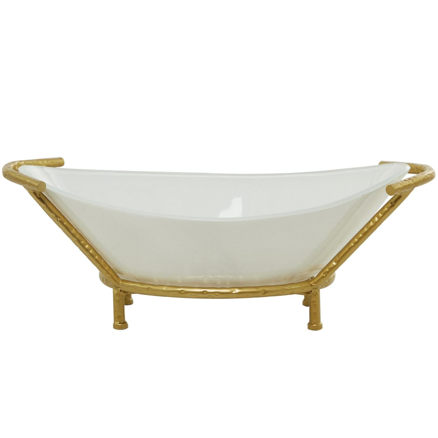 – Glass and metal decorative bowl showcases a textured gold frame and shiny white glass to give a sophisticated look to modern spaces
