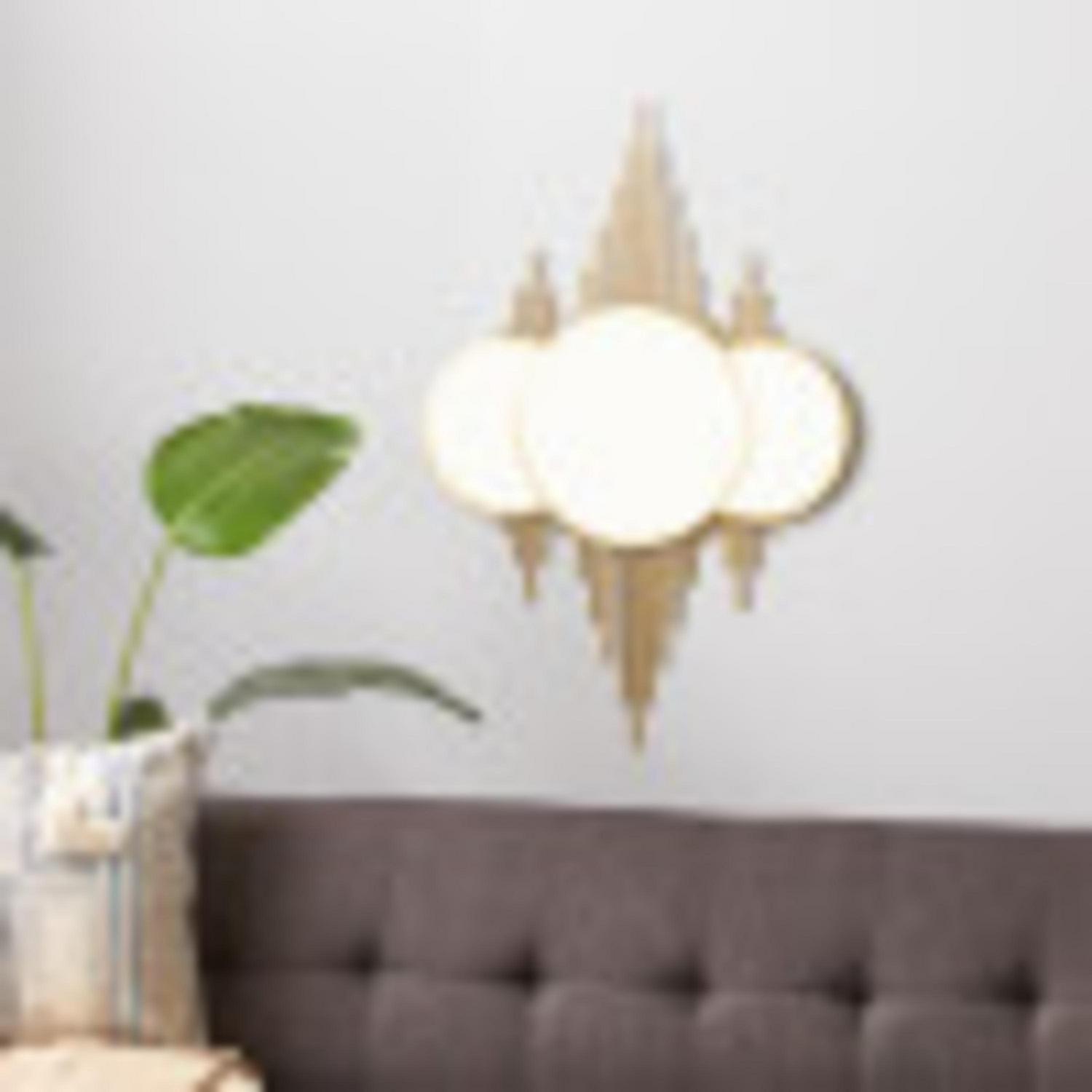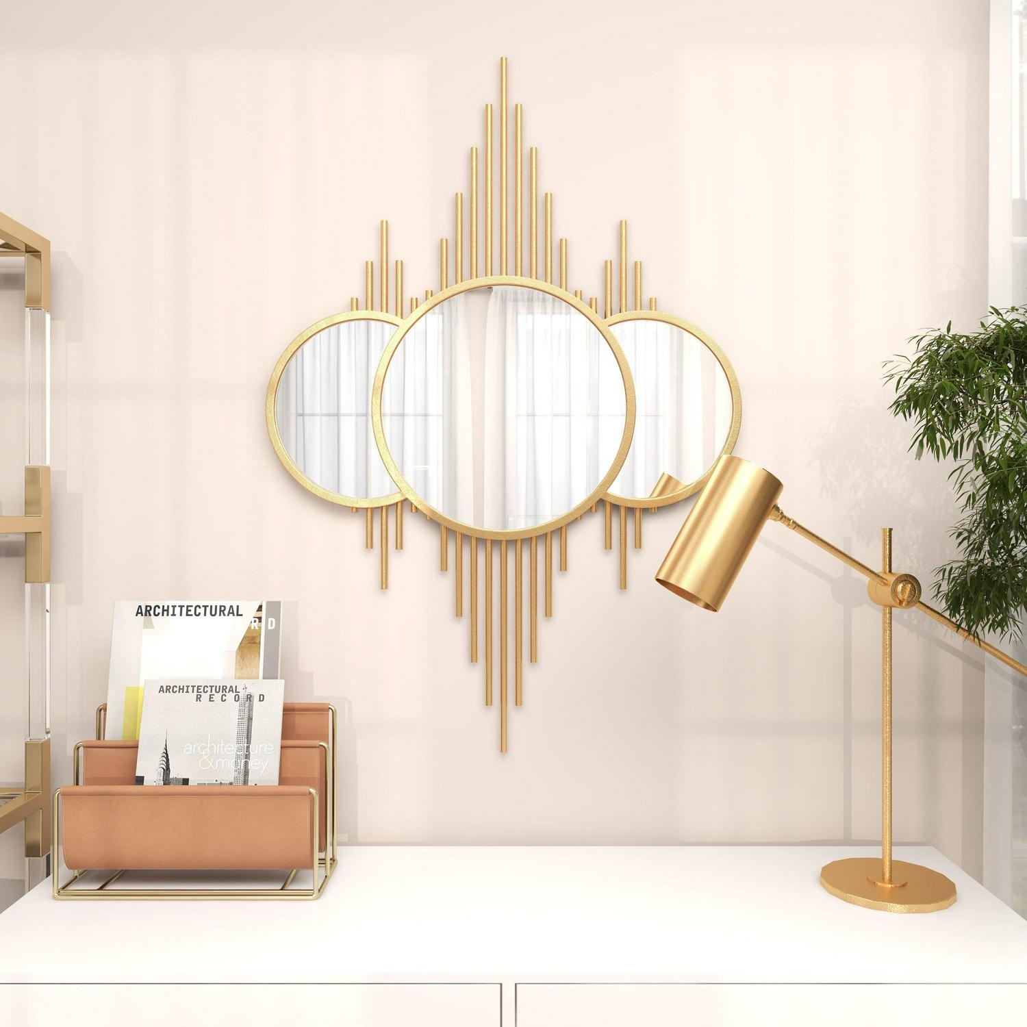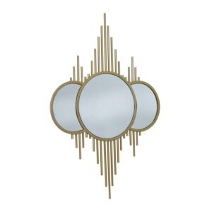 – This unique round wall mirror features 3 overlapping round mirrors with a gold frame and a diamond-patterned exterior design