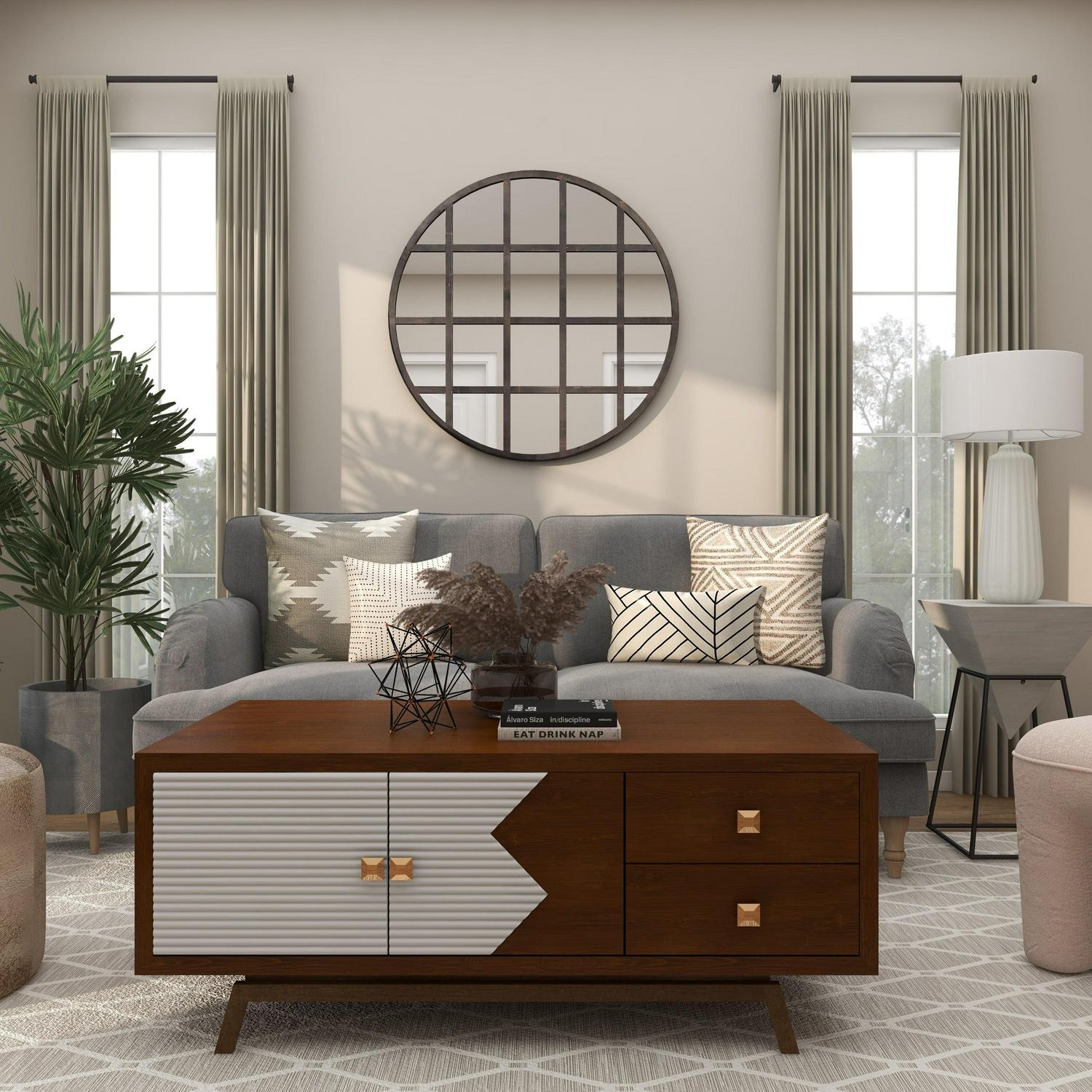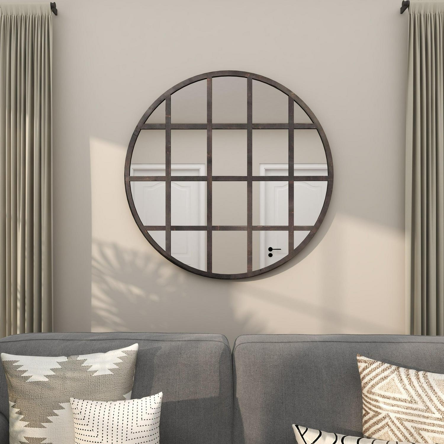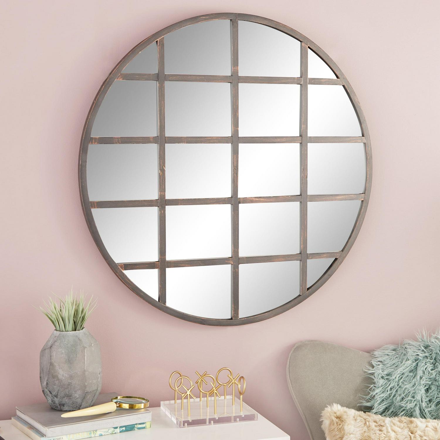 – This wall mirror decor has round shape and grid pattern