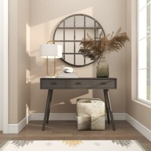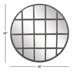 CosmoLiving by Cosmopolitan 36″ x 36″ Black Wall Mirror with Grid Frame is a unique addition to your stylish home. Display in smaller rooms or windowless rooms to make your space feel more open. This item ships in 1 carton. Can be hung vertically using the metal rings on the back; nails and screws not included. Suitable for indoor use only. This item ships fully assembled in one piece. This is a single black colored entryway mirror. Industrial style.