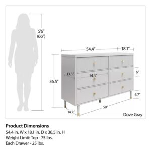 CosmoLiving by Cosmopolitan Elizabeth 6 Drawer Dresser, Dove Gray