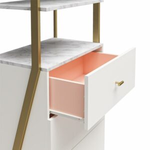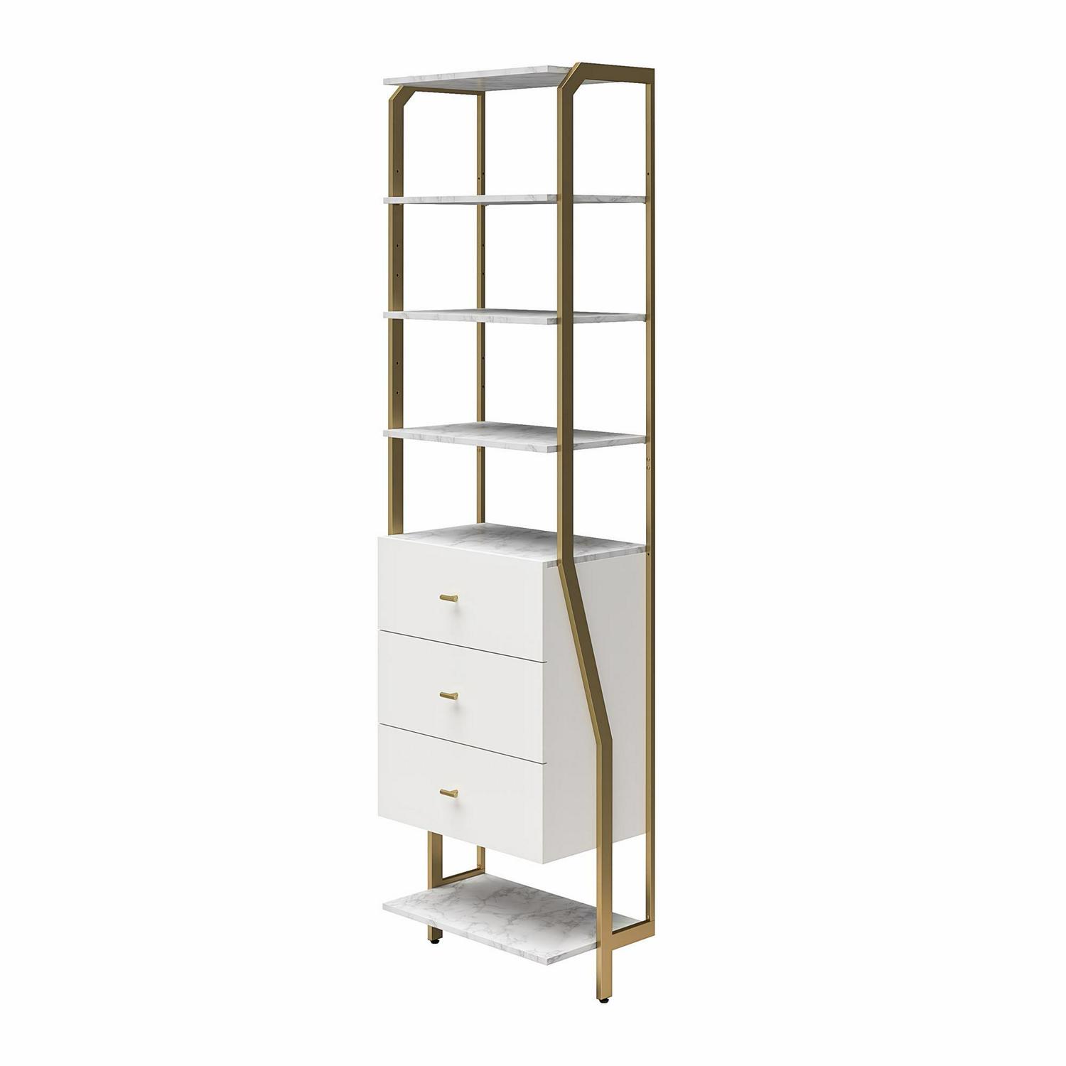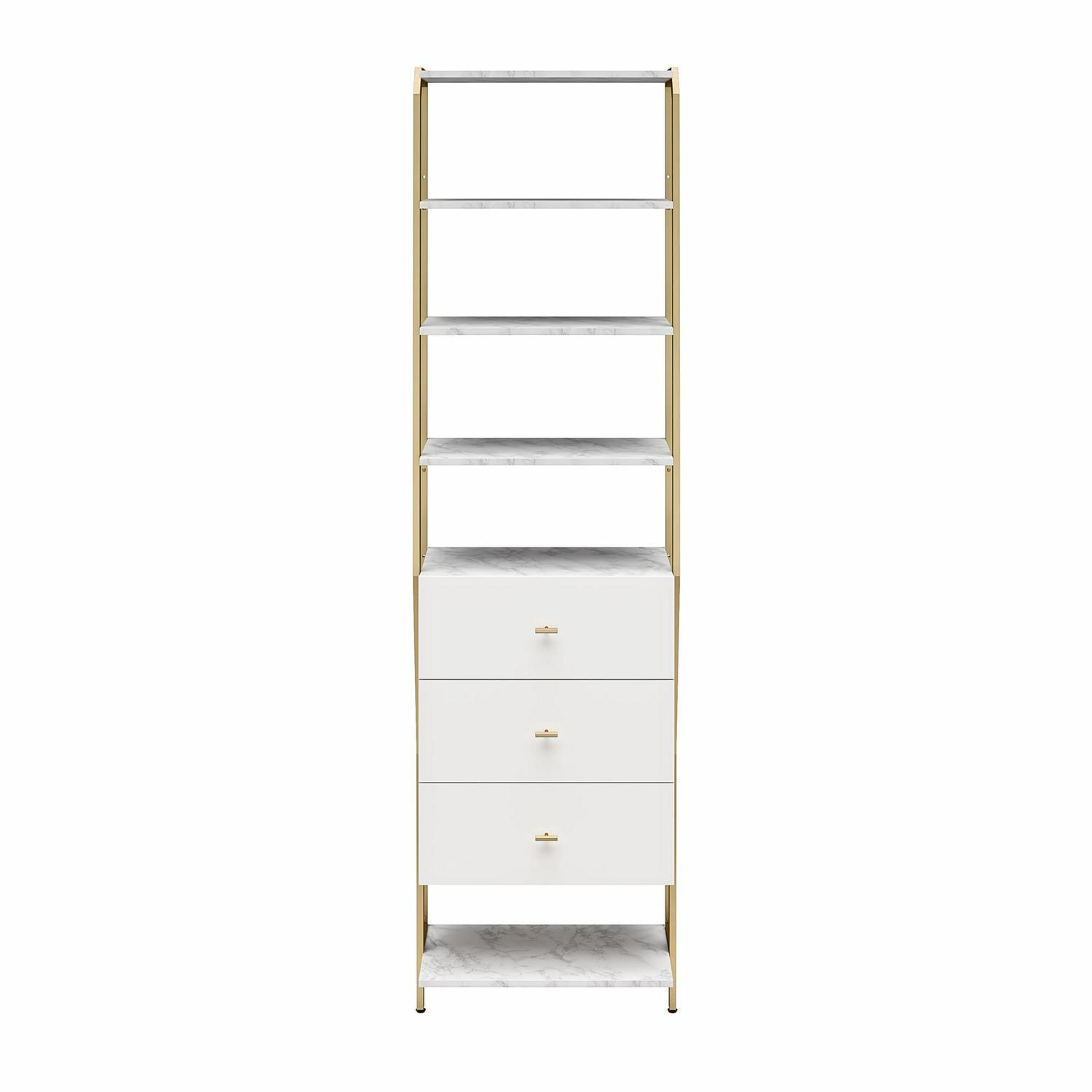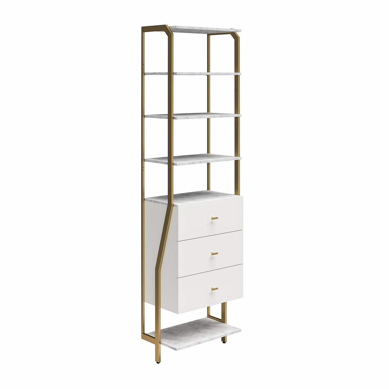 You can make your space look SO much well, spacey-er with CosmoLiving! This open Boutique-style closet organizer eliminates the need for bulky closet doors while visually increasing the square footage of a room! What more could you want CosmoLiving by Cosmopolitan slays the closet game with the gorgeous and truly glamorous Gwyneth Closet Organizing System. This stunning customizable closet system comprised of durable engineered wood and powder-coated metal allows you to mix and match your way to a highly organized open wardrobe. Designed to look like custom built-ins (without the designer price tag) these faux marble and gold closet gems allow you to show off your most prized possessions like a work of art. Use as individual pieces or integrate several units together for a coordinated look. (each unit sold separately) Stored behind closed doors, Gwyneth brings much needed structure to your current closet space. No closet No problem! Forget the doors and add depth to your bedroom by placing the units on an open wall or corner of the room. The stand-alone Gwyneth Closet 3 Drawer unit provides a total of 5 spacious shelves (3 adjustable) and 3 roomy drawers for all your *pretty things*. Mix and match with the entire Gwyneth Collection. (each sold separately)