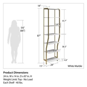 – Assembly required. Two adults recommended to assemble. Assembled measurements: 24 W x 14 D x 87 H. Max weight capacities: Shelves (x6): 40 lbs. each. Assembled product weight: 48.93 lbs.
