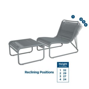 – Lounge dimensions: 24.4″ W x 37″ D x 32.3″ H and 250 lbs weight capacity. Ottoman: 25″ W x 22″ D x 15.6″ H