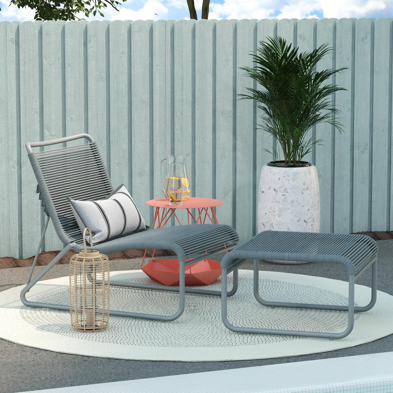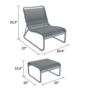 CosmoLiving by Cosmopolitan, Lita 2 Piece Patio Lounge and Ottoman Set, Charcoal