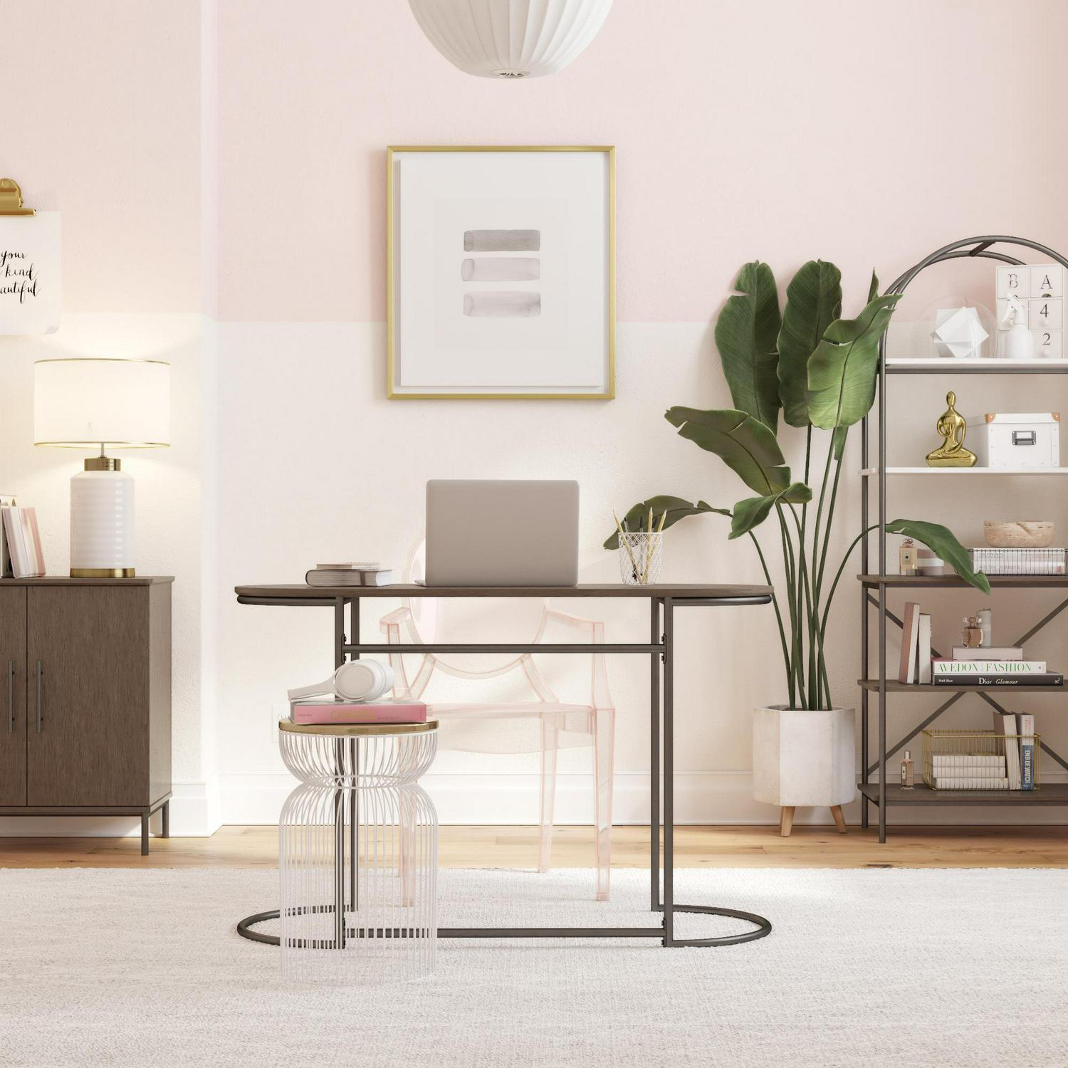 – Gray veneer finish with metal frame adds a sophisticated modern look to your home office or living room