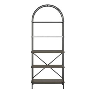 Nab our style for yourself with the CosmoLiving by Cosmopolitan Vivinne Five Shelf Bookcase. Arched frame and modern metal legs give this bookcase top-notch design perfect for any fashionista. Obsessorize on the 5 open shelves that provide ample storage for all of your favorite ~things~. A wall anchor kit is included to secure the bookcase to the wall and prevent tipping injuries. Available in trendy gray, the bookcase is a space-saving dream come true.