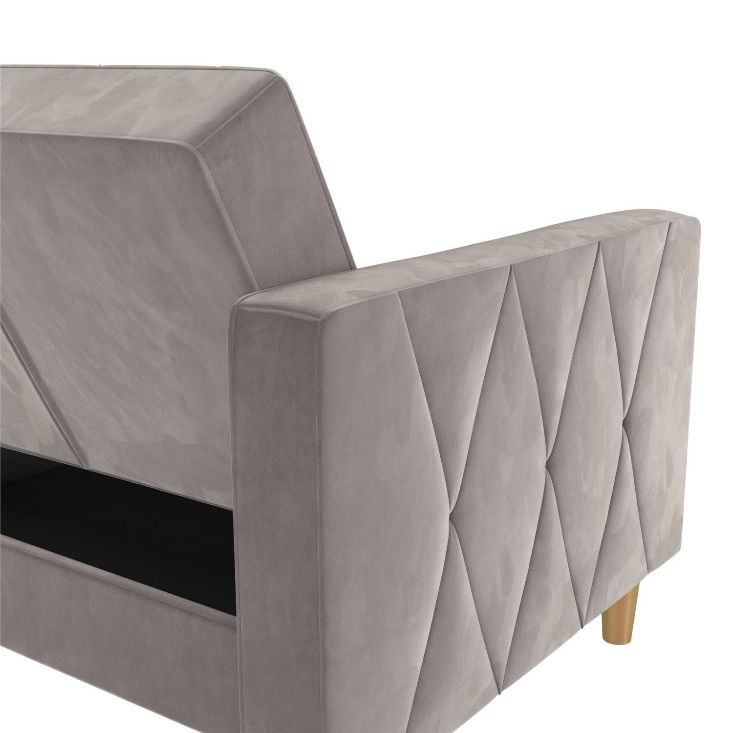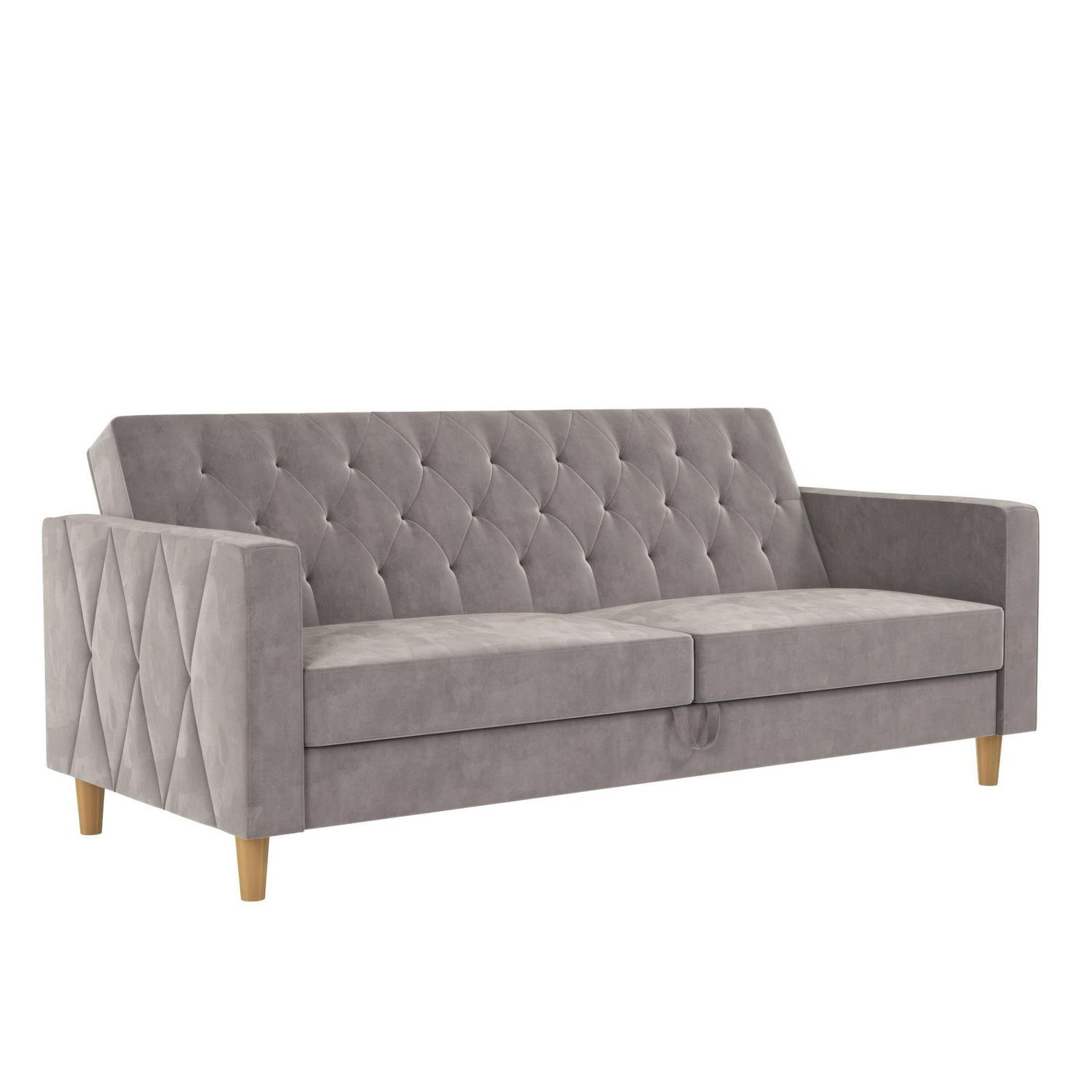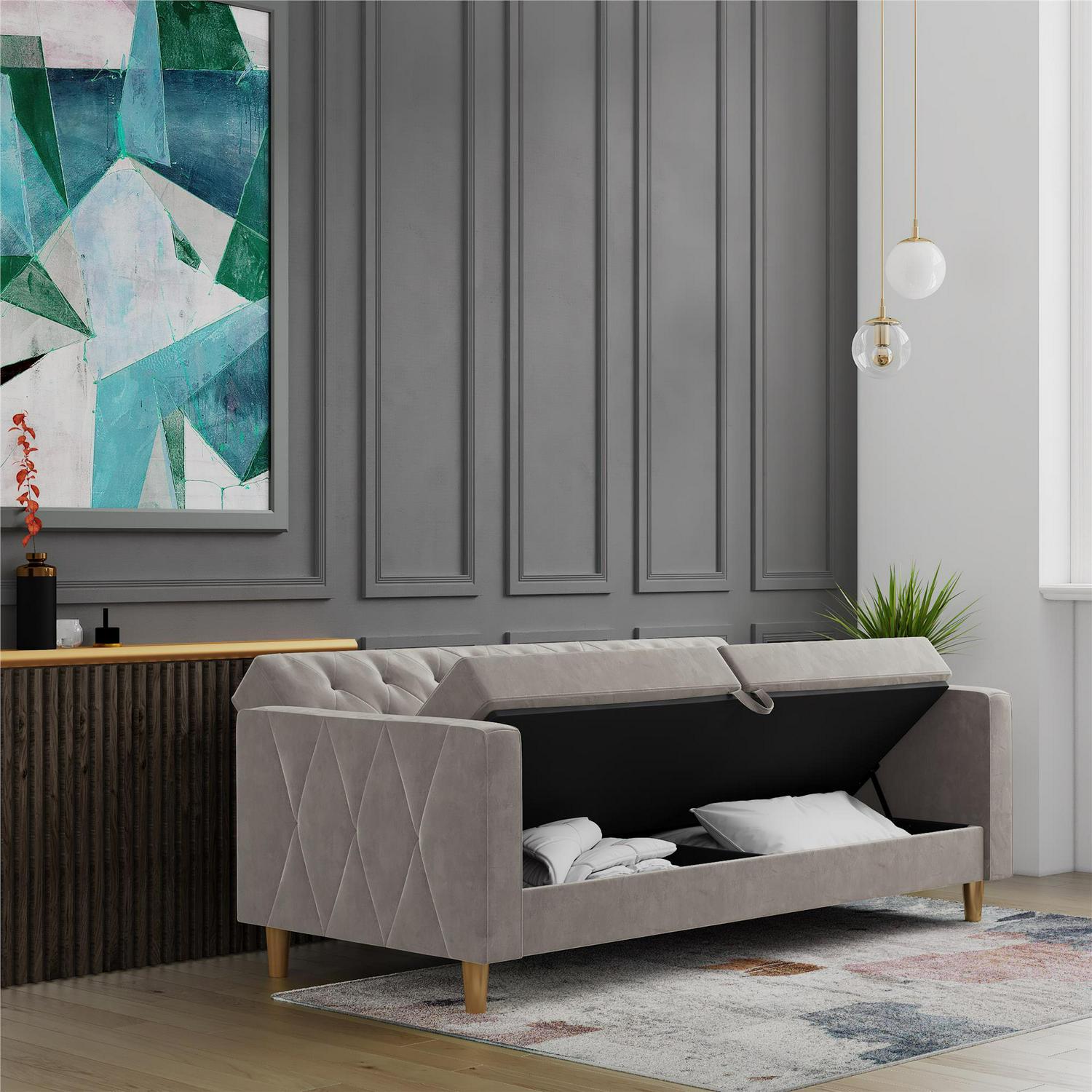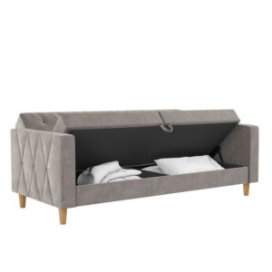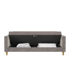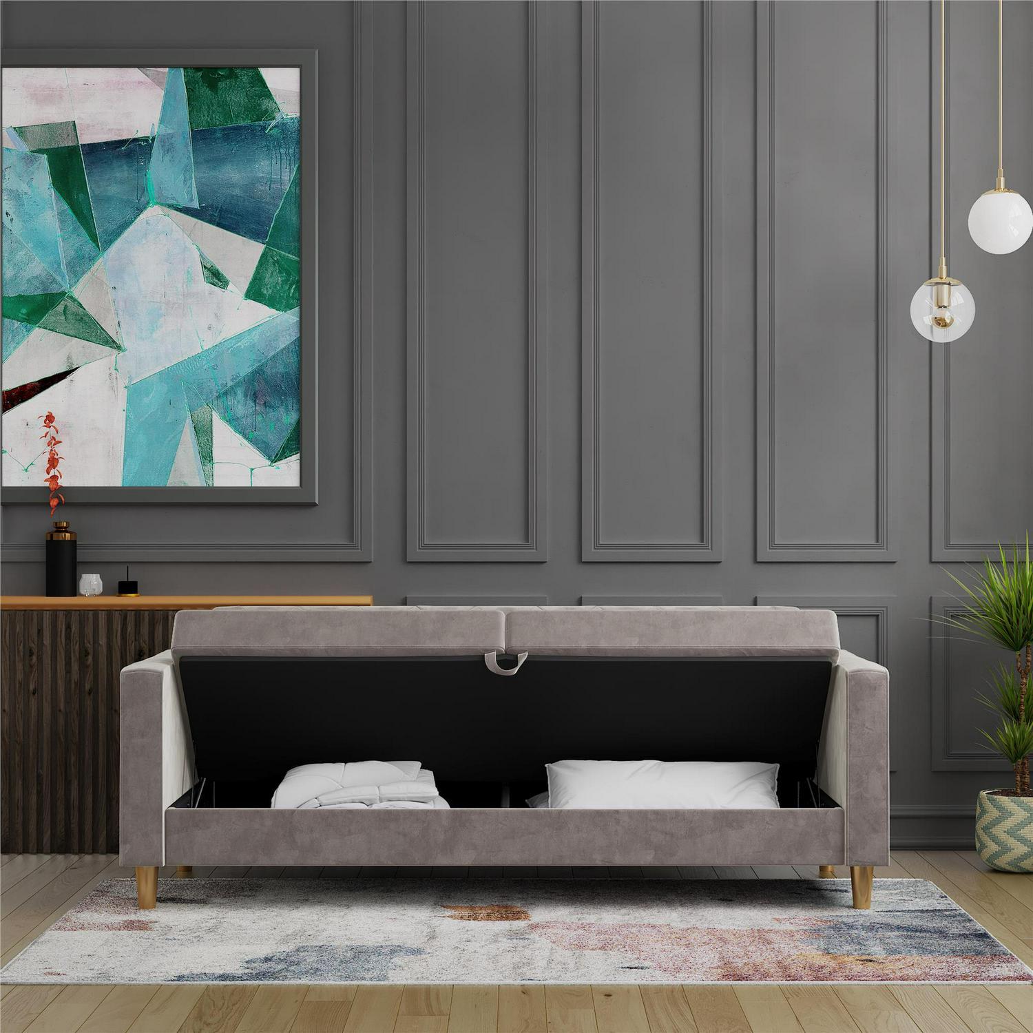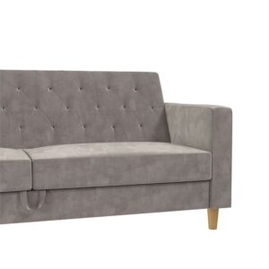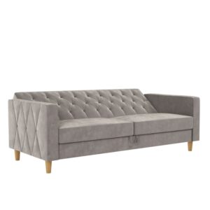 CosmoLiving Liberty Futon with Storage, Light Gray Velvet