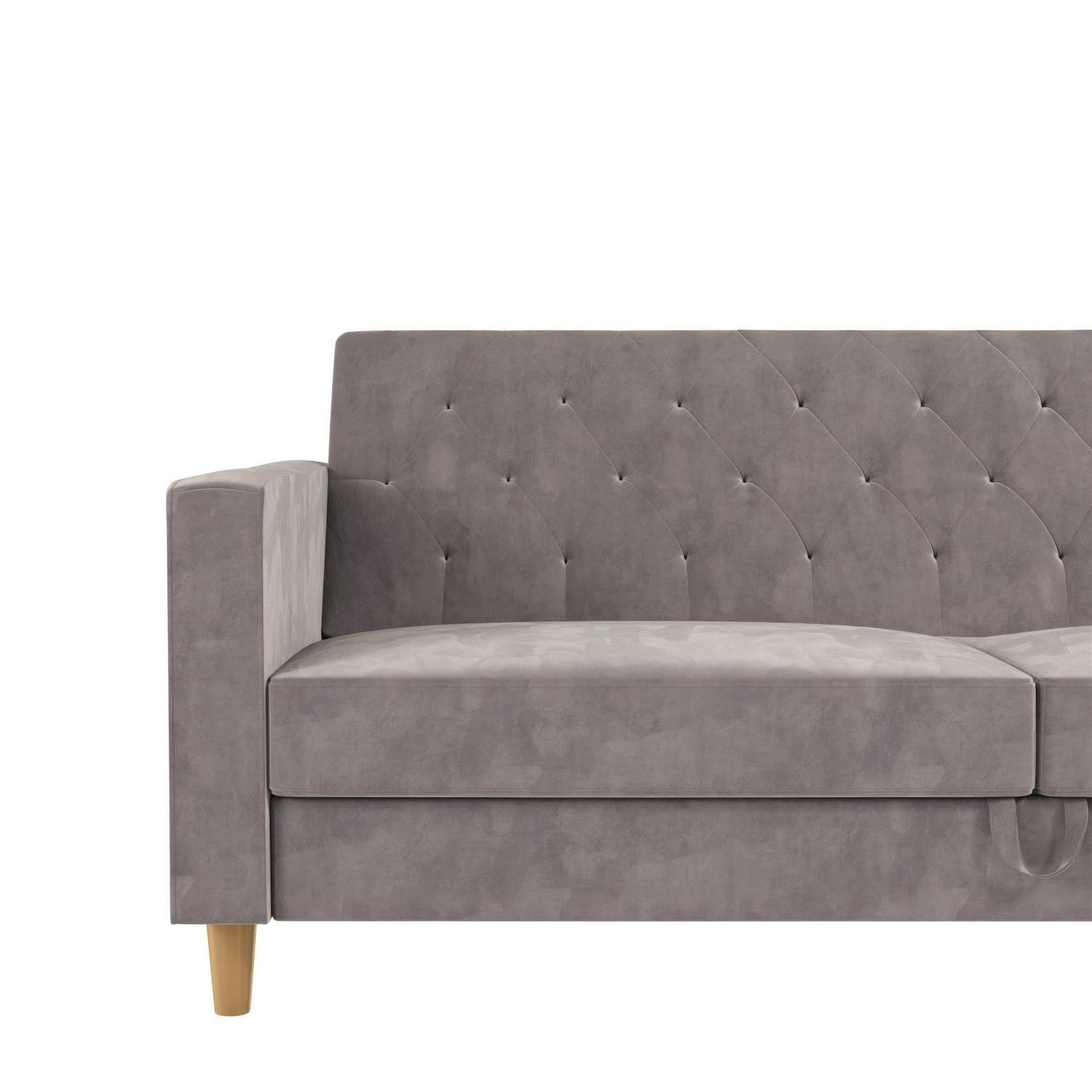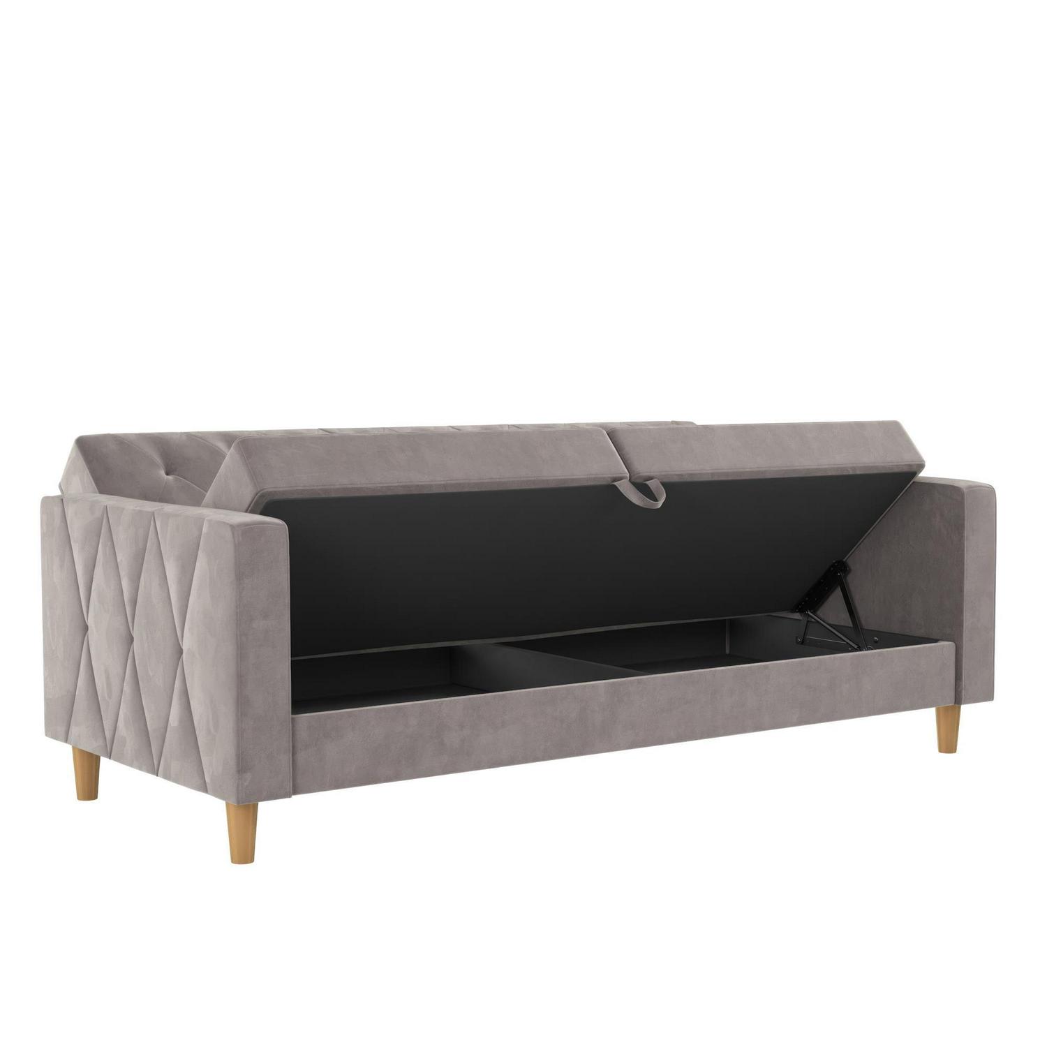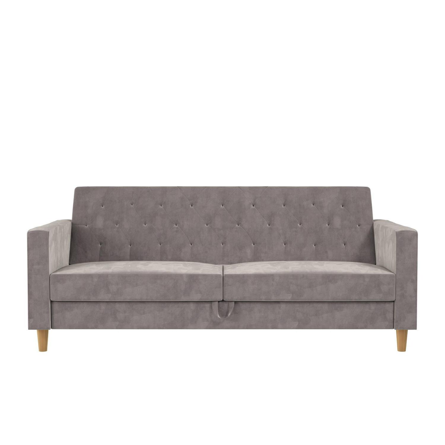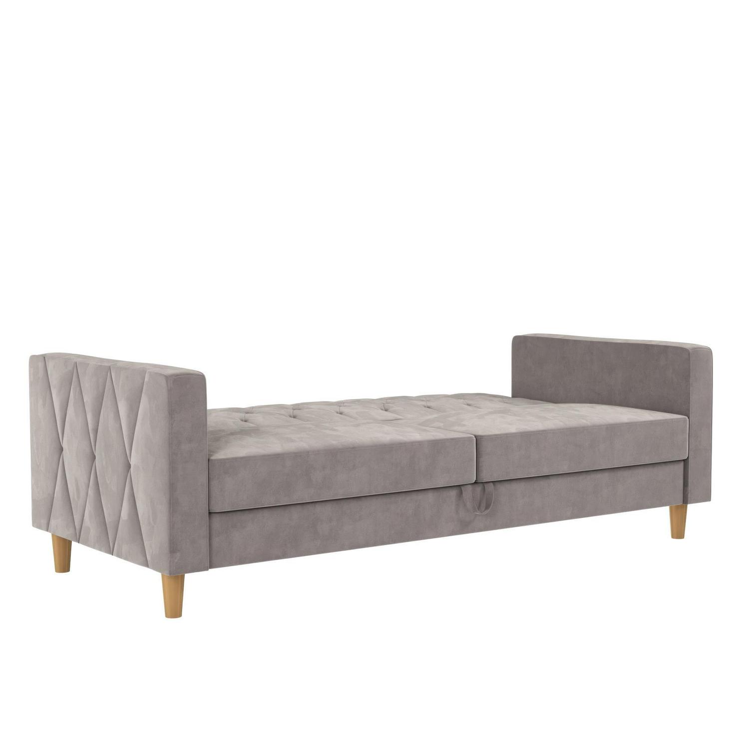 CosmoLiving Liberty Futon with Storage, Light Gray Velvet