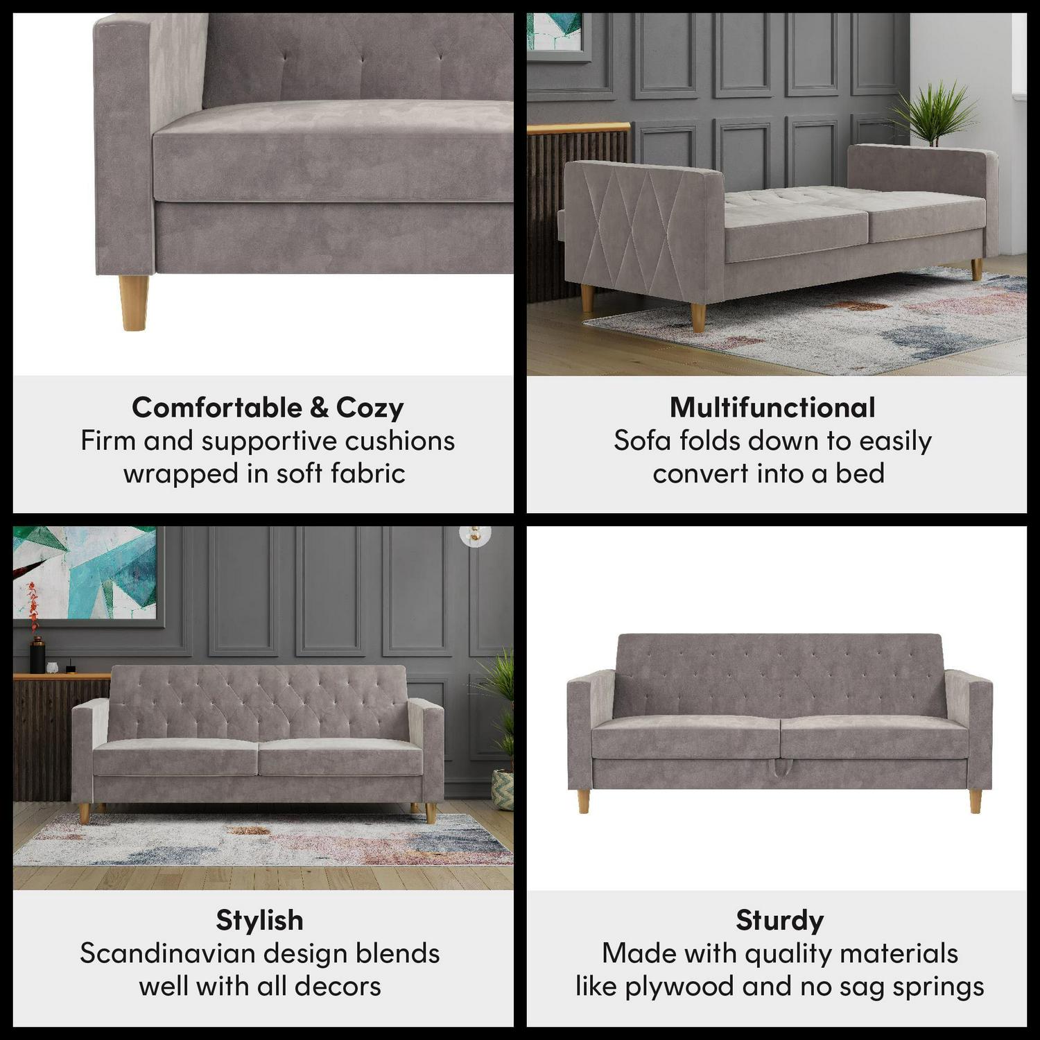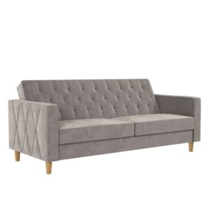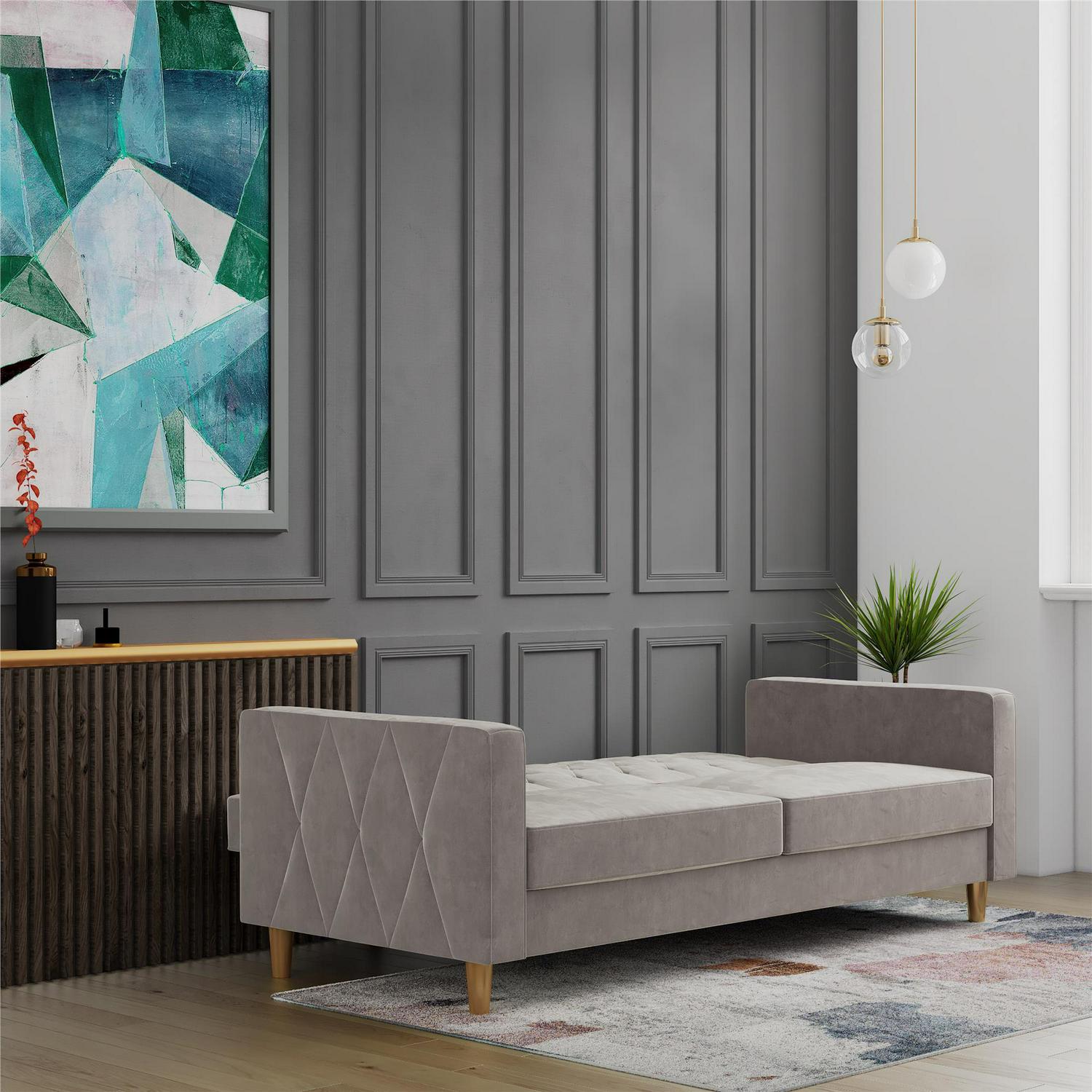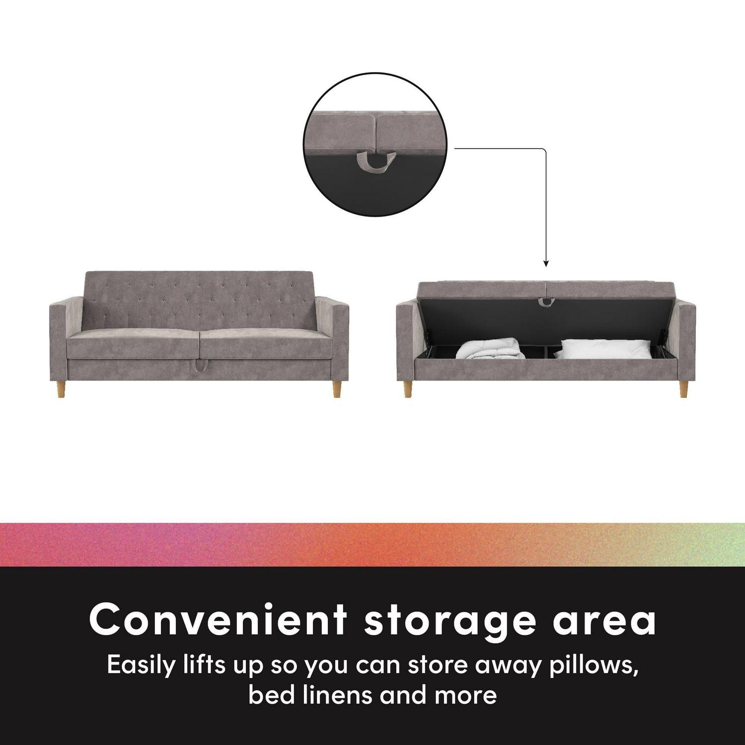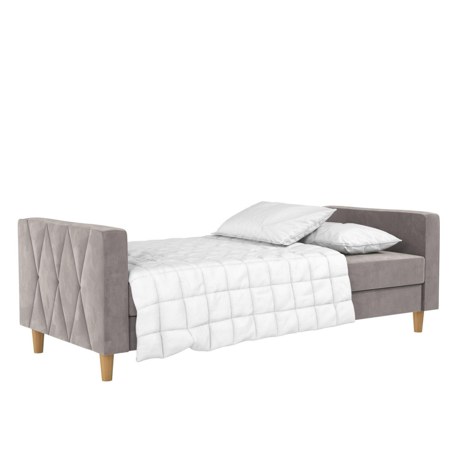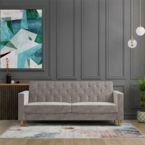 CosmoLiving Liberty Futon with Storage, Light Gray Velvet