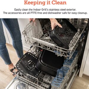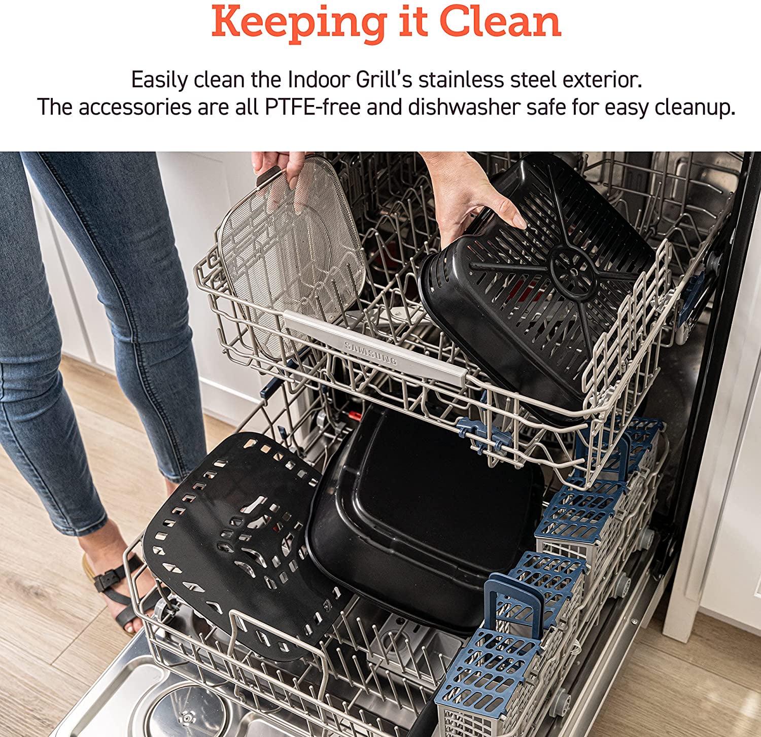 Our Cosori smart indoor grill comes with PTFE-free, ceramic-coated, dishwasher-safe accessories and a removable oil collector that are a breeze to clean.