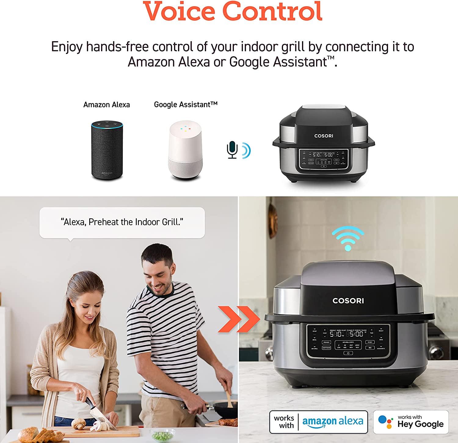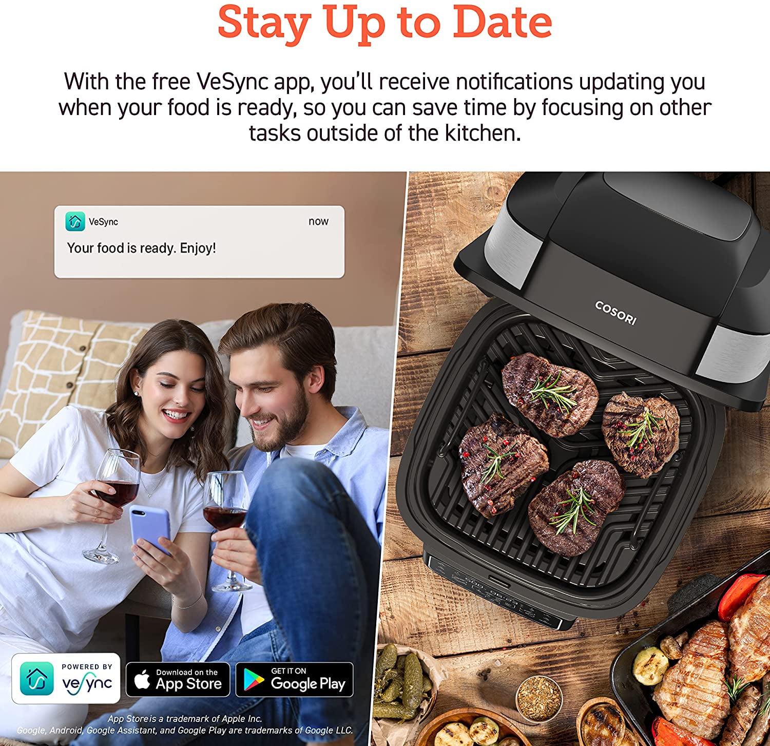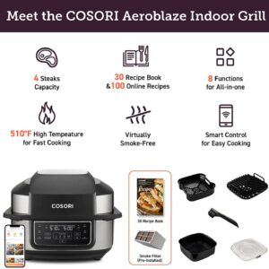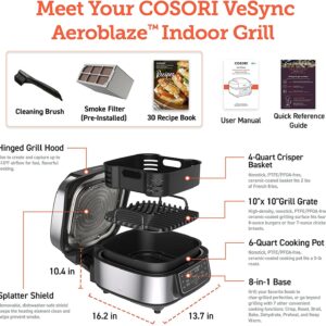 Cosori New Indoor Grill, Smart XL Air Fryer Combo Aeroblaze, 8-in-1, 6 Quart Voice Control, Black