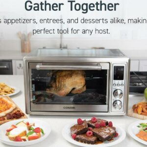 Cosori Toaster Oven Air Fryer CO130-AO-RXS, 32QT Large Stainless Steel Countertop Convection Oven for Pizza, Rotisserie,12-in-1, Silver – Spend Less Time Preparing Your Favorite Foods. Upgrade Crowdfused Exclusive Model with $17.99 Value Bonus Wire Rack! 12 Functions: Choose the preset that’s best for you without setting a temperature. Pick from Toast, Bagel, Pizza, Bake, Roast, Air Fry, Broil, Cookies, Rotisserie, Dehydrate, Ferment, or select Warm to keep your food ready to serve. 32QT Large Capacity: Cook for 5-7 people with the 32-quart/30-litre air fryer toaster oven, which can fit a 13-inch pizza, 6 slices of bread, or an entire rotisserie chicken. Convection Oven: Reduce your cooking time using the Smart Air Fryer Toaster Oven. Use the convection fan for fast and even cooking especially if you like crispy results. This function is perfect for a rotisserie chicken. Join Cosori, you will also be surprised with:100 original recipes, fresh from the COSORI kitchen. Large Online Cosori Users Community. Direct Assistance from Cosori Chefs. Start your Journey with Cosori Air Fryer TODAY!