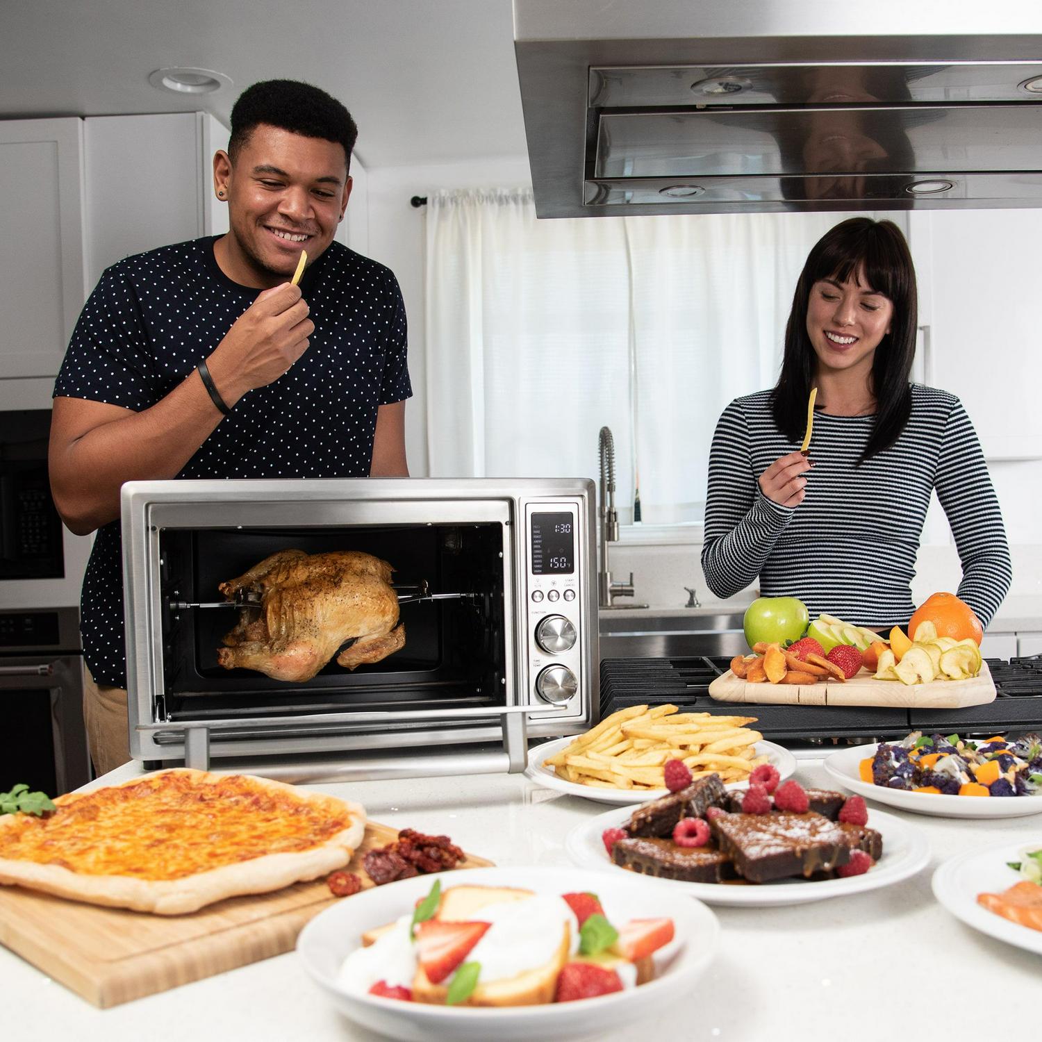 – 12 Cooking Functions: Toast, Bagel, Pizza, Bake, Roast, Air Fry, Broil, Cookies, Rotisserie, Dehydrate, Ferment.