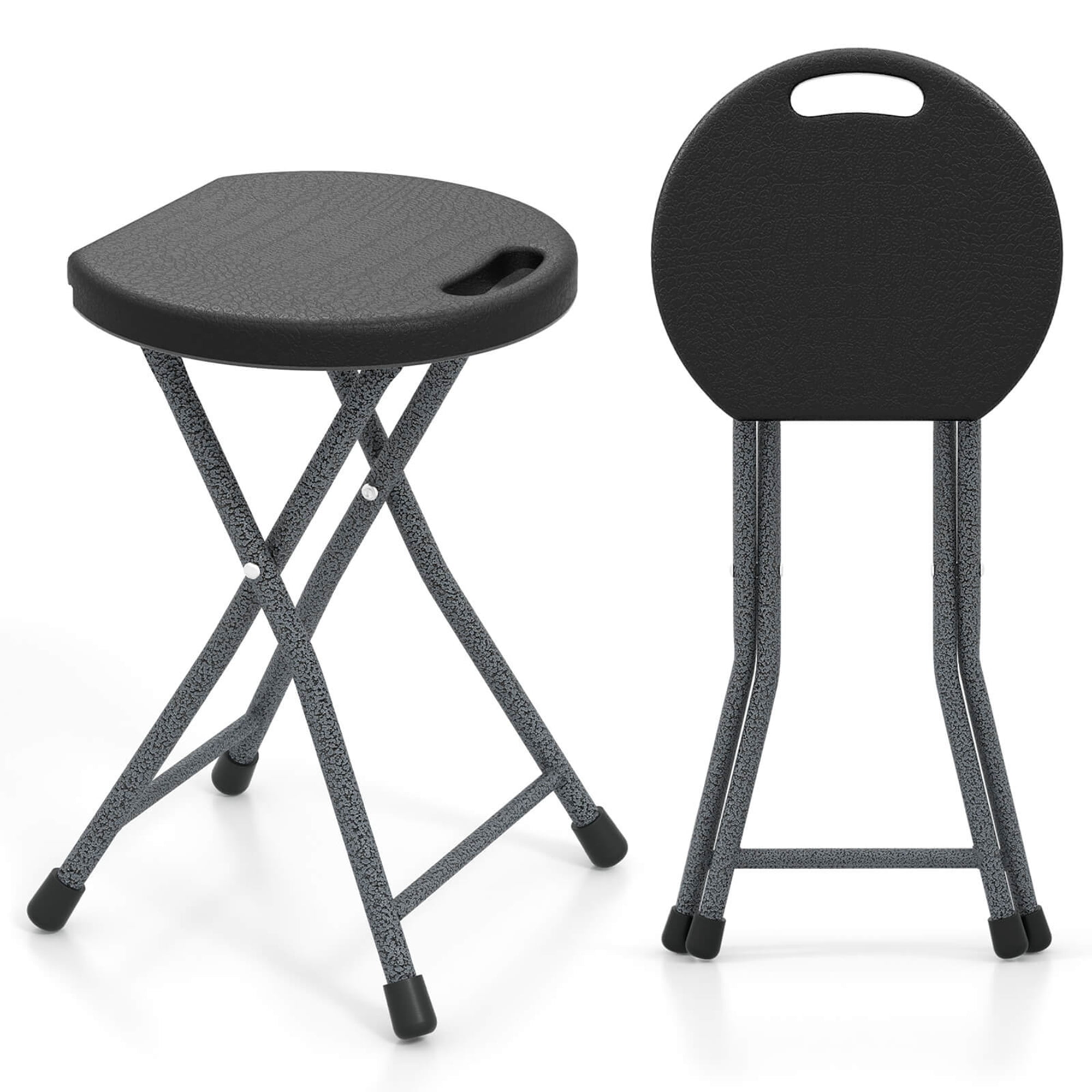 Costway 1 PCS 18″H Folding Stool Portable & Foldable Camping Chair with Built-in Handle Black
