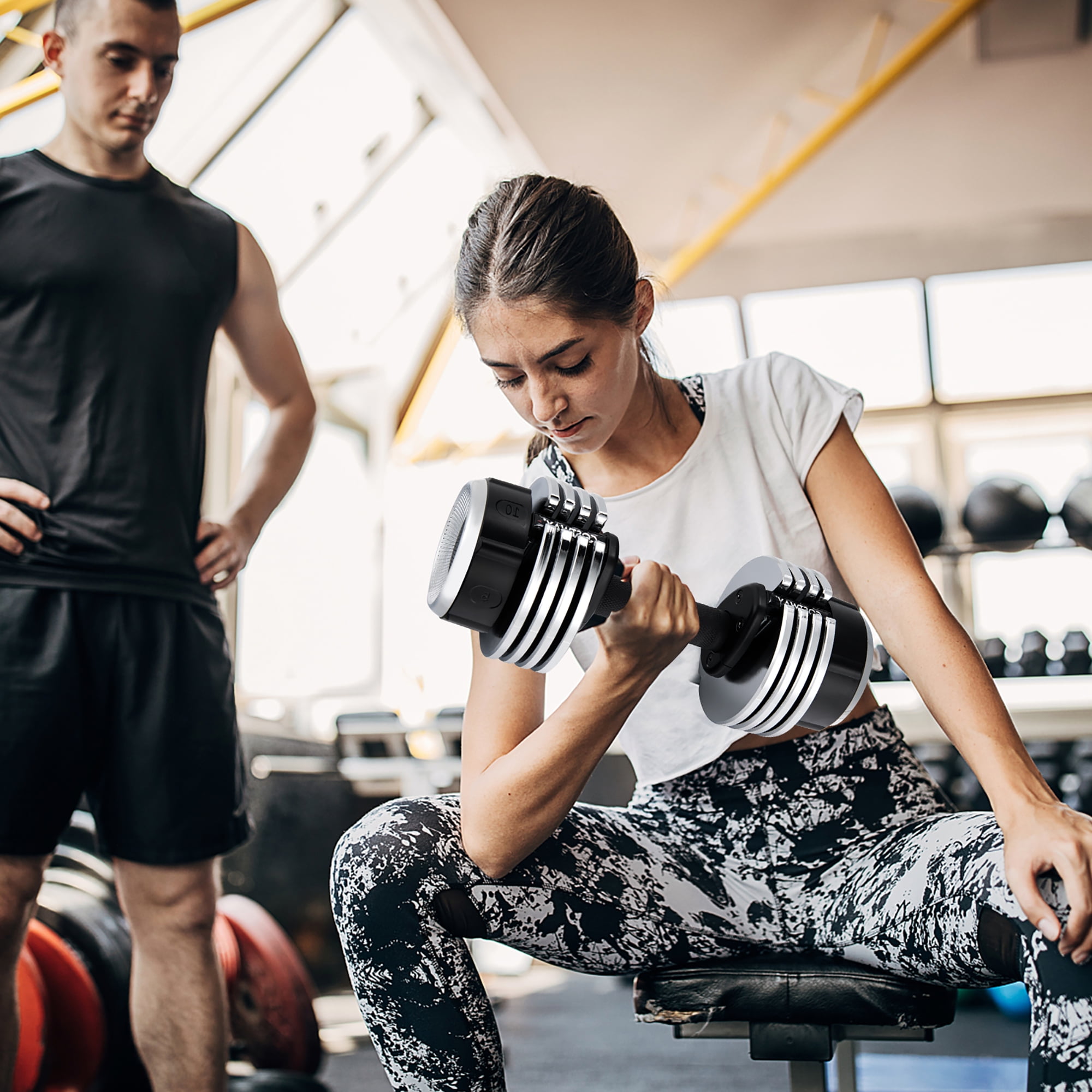 5 in 1 Adjustable Fitness Dumbbell: Coming with 5 adjustable weights from 5 lbs, 10 lbs, 15 lbs, 20 lbs to 25 lbs, this single dumbbell can support diverse strength training for both women and men. It can offer multiple exercising modes to exercise your arms, chest, back, abdomen and waist to build strength and get a perfect figure. Fast Weight Adjustment by 1 Hand: You can rapidly switch the dumbbell weight you want by rotating the handle with one hand. Just turn clockwise to decrease weights and turn counterclockwise to increase weights. Moreover, the clear weight indicator can save your time of changing weight to gain higher training efficiency. High Quality Material: The premium steel weight plate is covered with high strength nylon coating to ensure great rust resistance and stability for long-lasting use. And each weight plate weighs 2.5 lbs. The adjustable dumbbell tray is made of selected PP material which has strong toughness and is not easy to break or deform. Non-slip Handle & Safety Lock: This single dumbbell features an ergonomic handle with anti-slip textured surface to give you a comfortable and firm grip during exercising. In addition, with the safety lock system, the weight plates can be fixed to the handle firmly and tightly without worrying about falling off. Space-saving & Easy to Store: The shatterproof and durable dumbbell tray provides secure storage for the dumbbell without taking up much floor space. Meanwhile, it can protect your floor from scratches and keep your home gym well organized. With a compact size of 15” x 7.5” x 6.5” (L x W x H), this single dumbbell is easy to store in any narrow space.