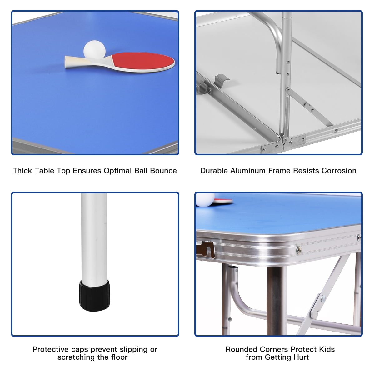 Costway 60” Portable Table Tennis Ping Pong Folding Table with Accessories Indoor Game Blue