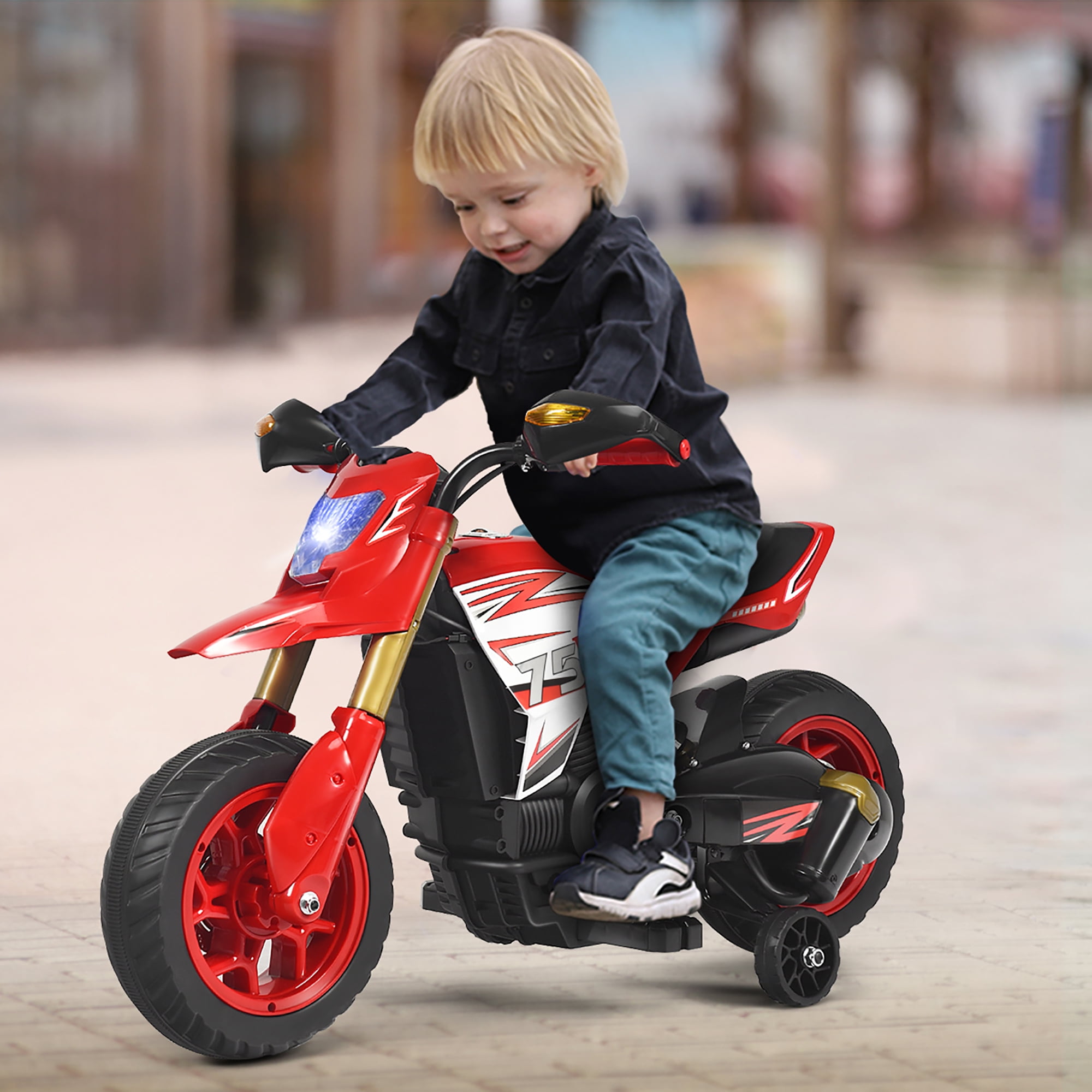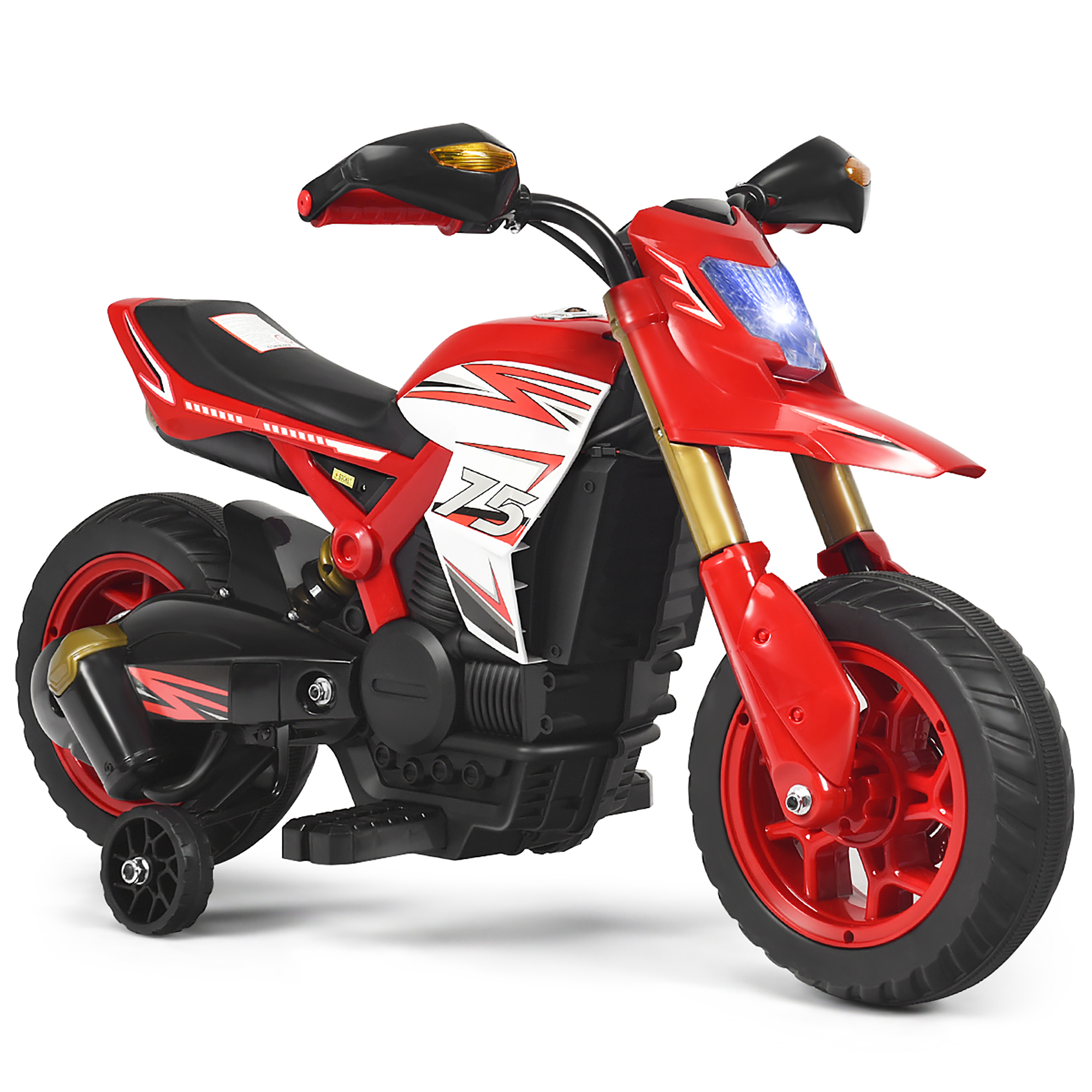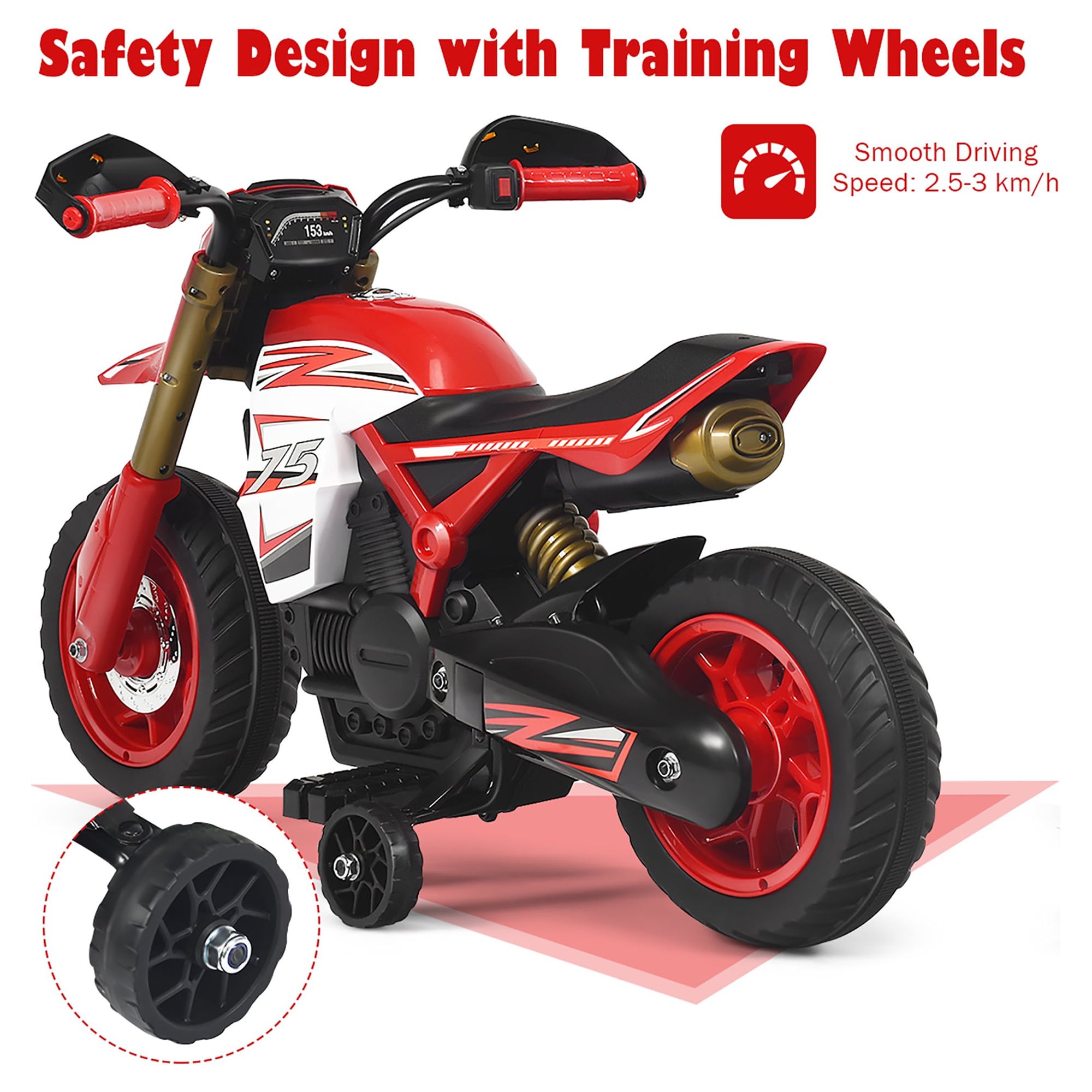Costway 6V Electric Kids Ride-On Motorcycle Battery Powered Bike w/Training Wheels Red
