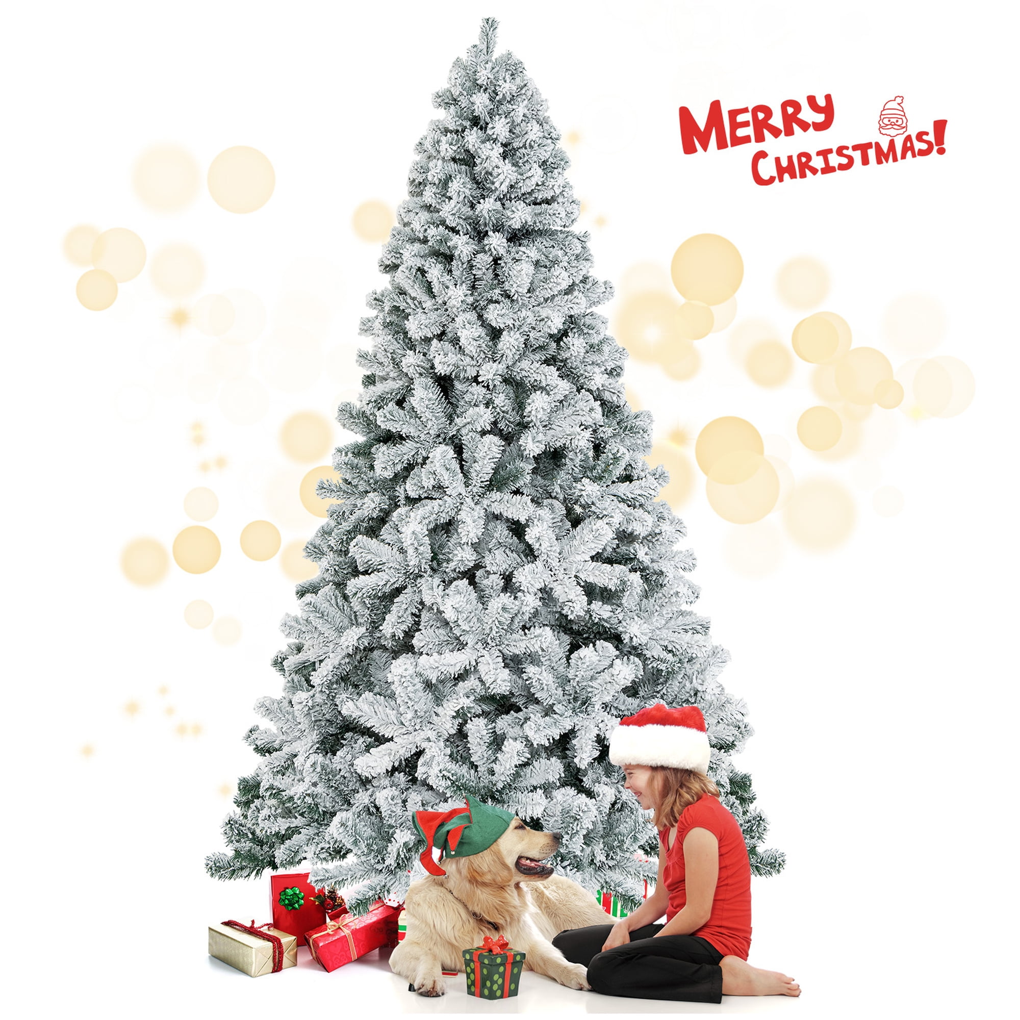 Costway 7.5ft Snow Flocked Hinged Christmas Tree Unlit Metal Stand