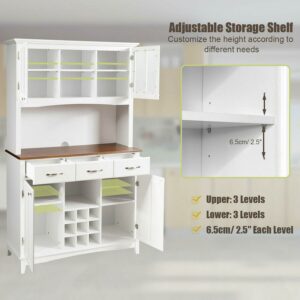 Costway Buffet And Hutch Kitchen Storage Cabinet Cupboard w/ Wine Rack and Drawers White