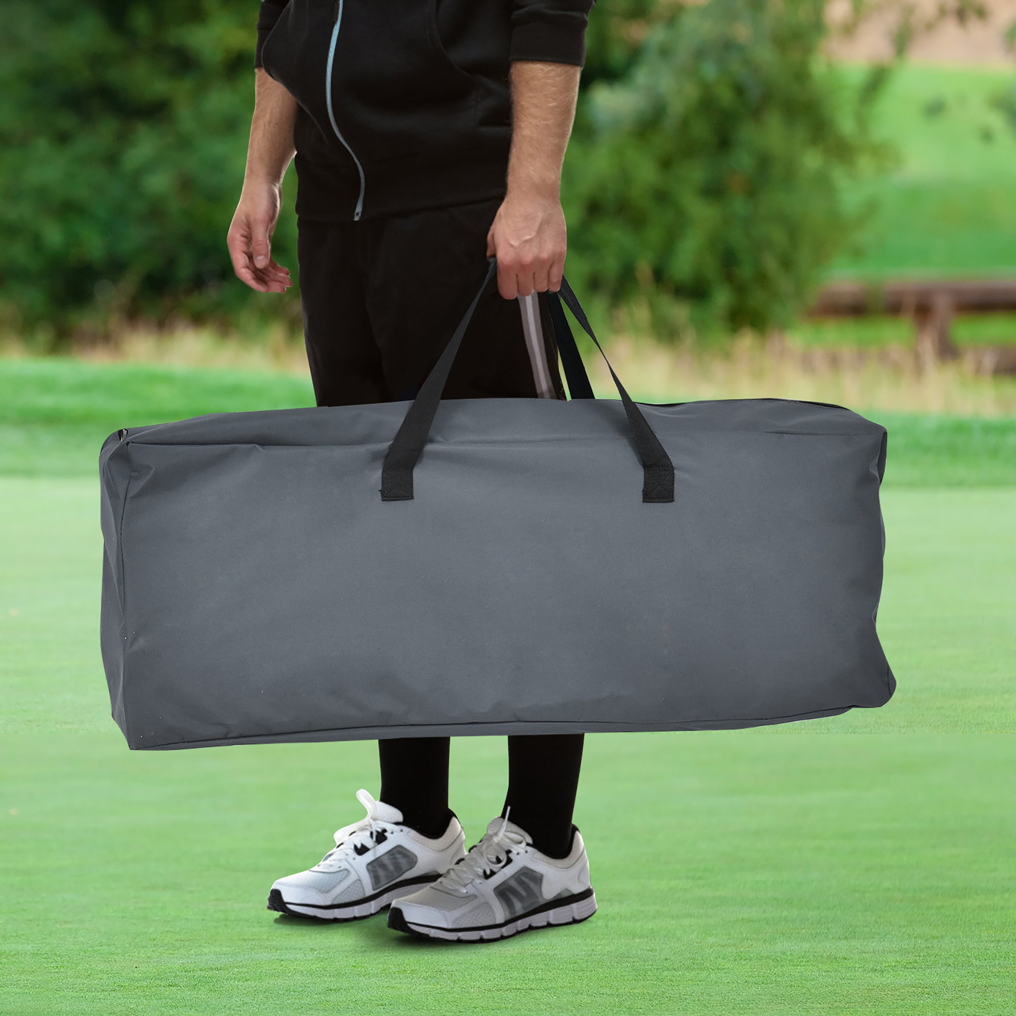 Our camping loveseat chair is specially designed for couples who like outdoor activities. Our oversized camping chair with padded seat and curved high backrest provides you with comfortable sitting experience. Made of steel and Oxford cloth, this double camping chair is durable and stable. Since its lightweight and folding design, you can store the chair in the portable bag and carry it wherever you want. The side mesh bag helps you to access and put things easily. The sturdy steel structure can load up to 500lbs and you can have intimate communication with your friends while fishing. The large non-sink foot pads and puncture-proof fabric are ideal for outdoor use. Our outdoor loveseat chair is your perfect choice. Feature 500lbs load capacity ensures 2 adults to sit together Folding design & carrying bag for easy transportation Sturdy steel frame & non-sink pads for high stability High quality oxford cloth is wear-resistant & waterproof Padded seat & high backrest for better sitting experience Side mesh storage bag with easy access to put handy things Non-sink foot pads is specially designed for outdoor use Specification Color: Gray Material: Steel, Oxford Cloth, Foam Overall Size: 60” x 28” x 38.5” (L x W x H) Carrying Bag Size: 39” x 8” x15” (L x W x H) Seat Platform Size: 45”x 20”(L x W) Sitting Height: 20” Backrest Height: 21” Net Weight: 17.5lbs Load Capacity: 500lbs Package includes: 1 x Camping Loveseat Chair 1 x Instruction