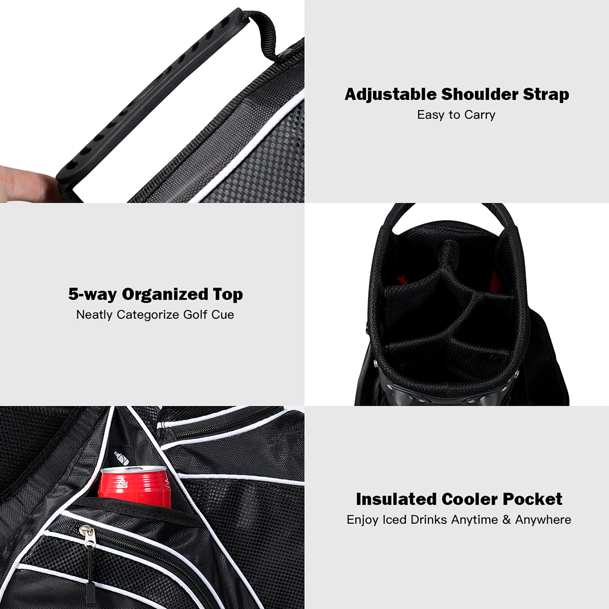 Costway Golf Stand Cart Bag Club w/6 Way Divider Carry Organizer Pockets Storage Black