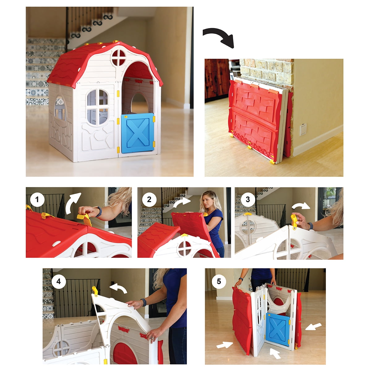 Costway Kids Cottage Playhouse Foldable Plastic Play House Indoor Outdoor Toy Portable