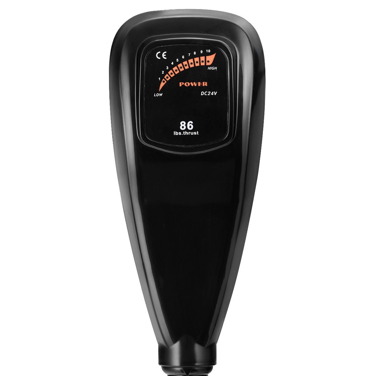 Designed especially for small to medium boats, such as Jon boats, Tenders, Inflatables, Gheenoes, Canoes, and Kayaks with brackets. You can control this freshwater trolling motor easily and comfortably with six-inch telescoping adjustable handle. Its three-blade weedless propeller ensures smooth movement even through underwater grass and marsh. You won’t be disappointed to choice this trolling motor as freshwater applications. Feature 6” telescoping adjustable handle 6” telescoping adjustable handle Durable multi-position angle adjustment aluminum mount 3 blades 10 points LED lights battery indicator CE and ROHS certificate NOTE: Please avoid more than 30 minutes continuous working with every speed Specification Speeds:5 forward/3 reverse Maximum Thrust:86lbs Shaft Length:36” Volts:24 V Propeller:3 blades propeller Package include: 1x trolling motor 1x operation manual