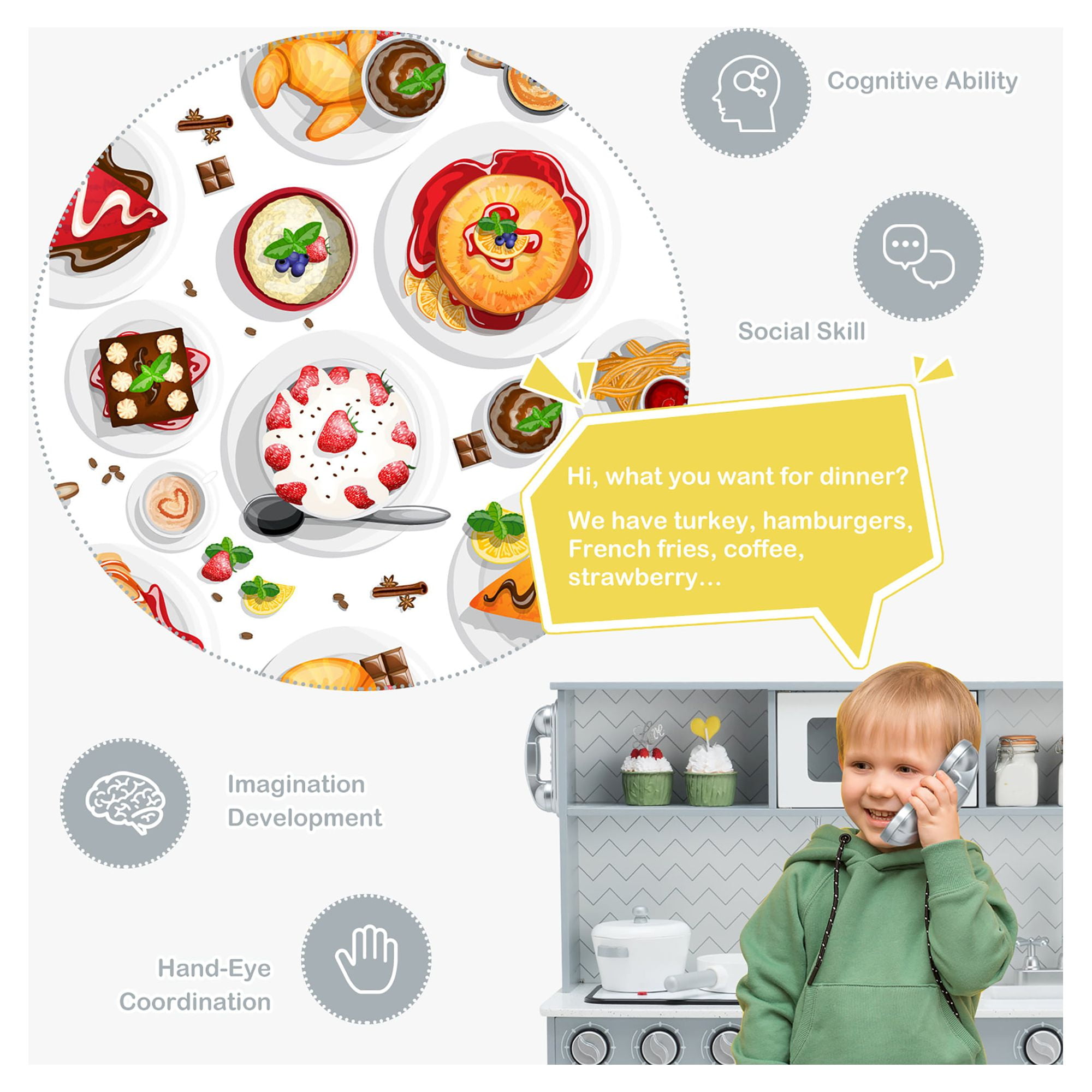 Realistic and stylish design draws kids’ attention in first sight Premium MDF board and PP plastic ensure stability and durability Help kids build good habits and enhance their social skills The oven and water dispenser are built-in realistic light and sound for fun