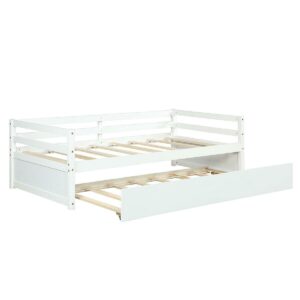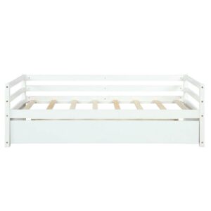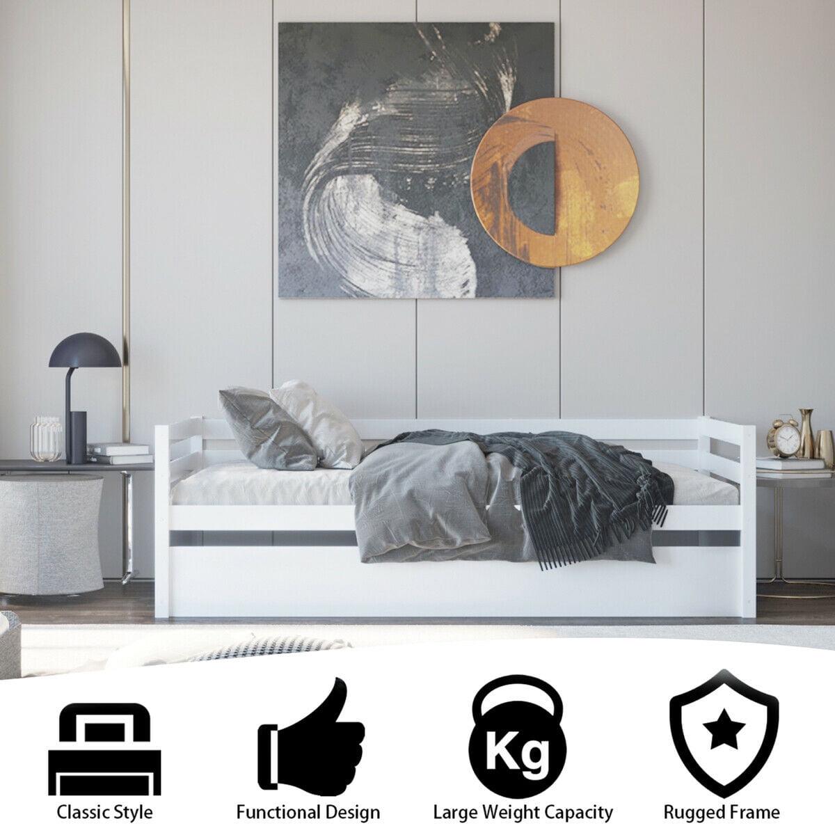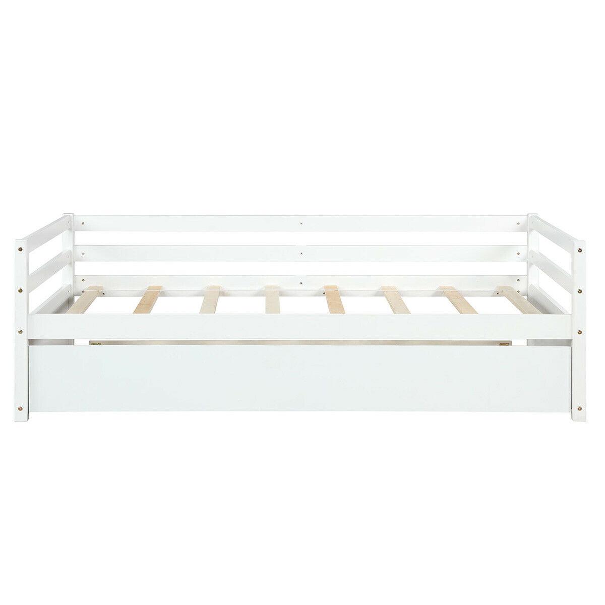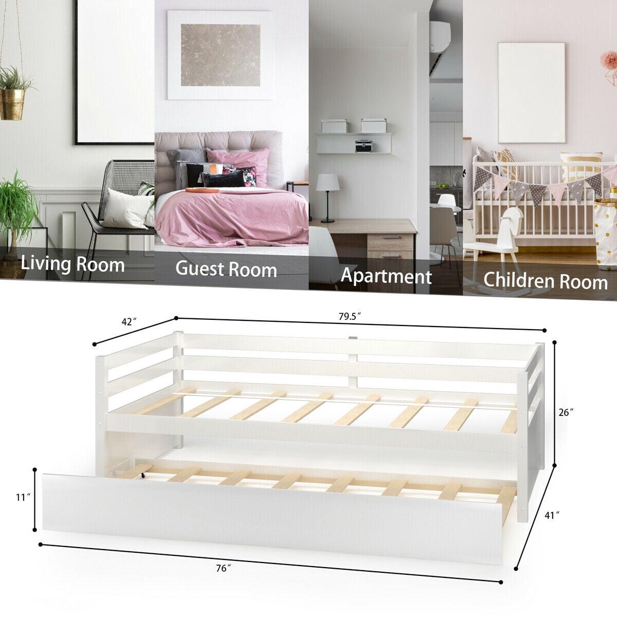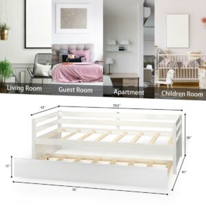 Costway Twin Size Trundle Daybed Wooden Slat Support Mattress Platform for Kids White