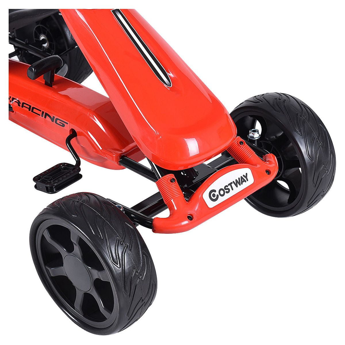 Costway Xmas Gift Go Kart Kids Ride On Car Pedal Powered Car 4 Wheel Racer Toy Stealth Outdoor Red