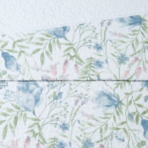 An antique base with a simple floral print with overtones of blue is the signature of this pattern. The edges feature a traditional stripe flange to add a bit of that farmhouse charm to your bedroom. Face cloth is 100% cotton fabric with a reverse in 100% microfiber polyester. The set includes pillow sham(s) to provide the complete look. Includes: one twin XL quilt 68×90 inches and one standard sham 20×26 inches. Face is 100% cotton, reversing to 100% microfiber. Filled with polyester/cotton. This item is machine washable, but please be sure to use appropriate sized machinery to avoid any excess wear on the items. This item is imported from China.