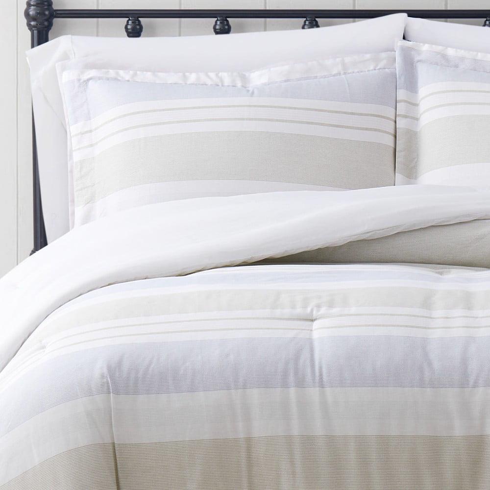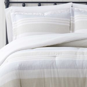 Cottage Classics White and Brown, Cotton Comforters, Full/Queen, (3 Counts)