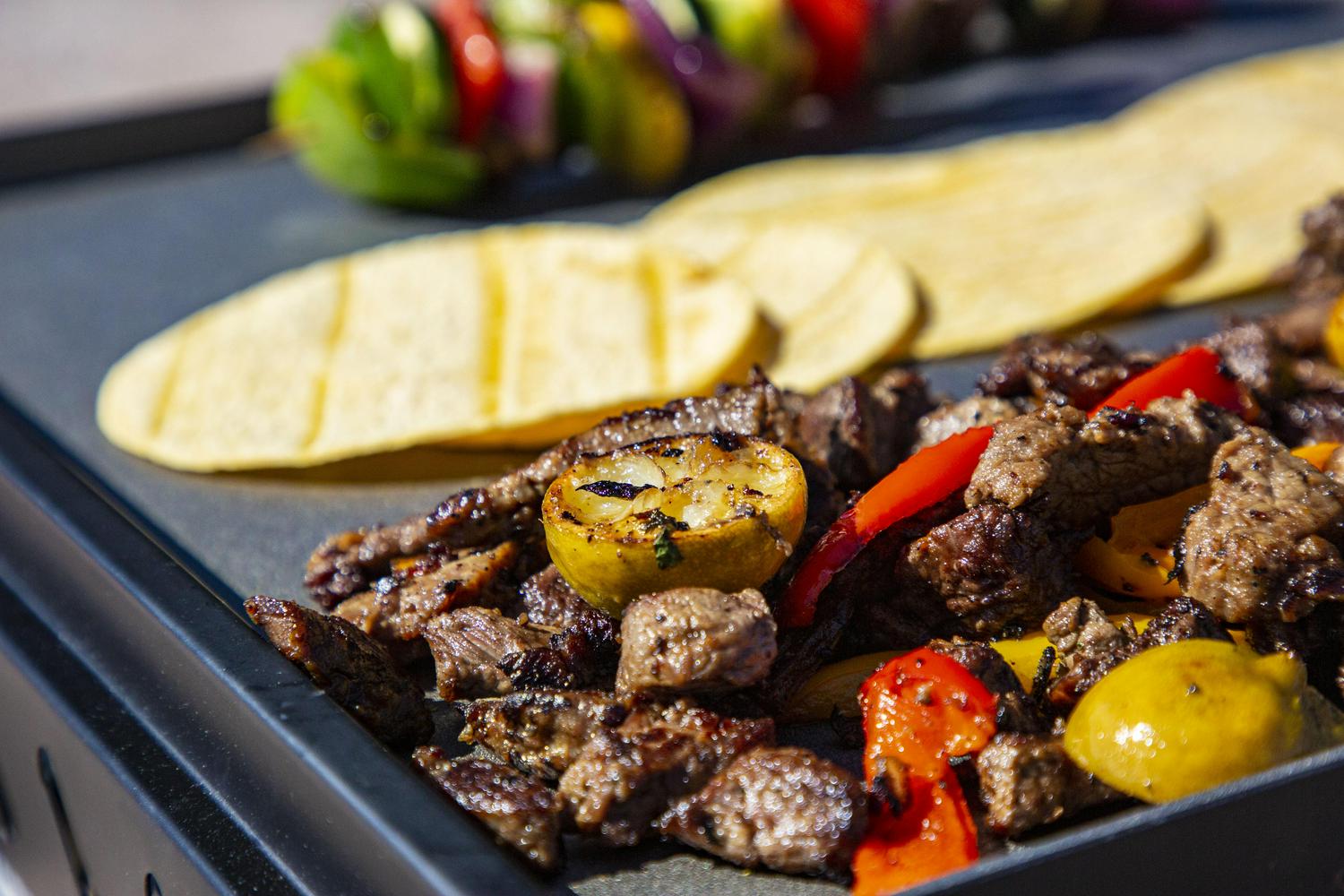 - Steel griddle top