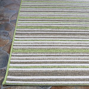 Introducing the Couristan Cape Brockton Indoor / Outdoor Area Rug, a perfect combination of style and durability for any indoor or outdoor space. This flatwoven rug features a high-low structured flat weave construction for added dimension and subtle sophistication and is crafted of the finest 100% fiber-enhanced Courtron polypropylene. With its hunter green and brown colors, the three refined linear horizontal patterns of this rug will enhance the appearance of any space. This outdoor/indoor performance area rug is designed for high traffic areas and is incredibly easy to maintain and clean. The rug is water, mold/mildew resistant, fade resistant, and pet friendly as well as UV stabilized to prevent fading or deterioration, even after months of exposure to the outdoors. Offering the perfect outdoor floor covering solution for your home, the Cape Brockton takes outdoor/indoor area rugs to a new level of sophistication that will blend effortlessly with any style of home, patio or decking furniture pieces.