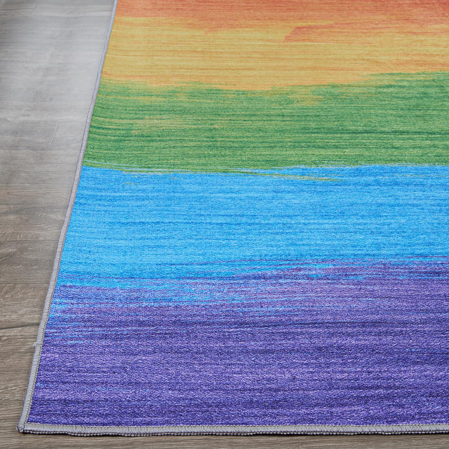 For those who take a more eclectic approach to decorating, the Rainbow Collection offers a refreshing series of fun-filled novelty area rugs, vibrantly designed in aggressive hues of Blue, Red, Orange, Yellow, Green and Purple. These fashion-forward area rugs are a perfect choice for game rooms, kids rooms and rooms that are purely based on color. Featuring a machine-woven base of 100% polyester that provides a soft underfoot and chic appeal, the craftsmanship and materials applied to these digitally printed area rugs is superior to any other area rug of its kind in today’s market. The addition of a non-skid backing and saddle-stitched edges add to the overall value of this unique collection. Perfect for contemporary or transitional settings, these vibrant, whimsical area rugs will add a comfortable and sophisticated appeal to any interior that was designed for its fun-filled atmosphere.