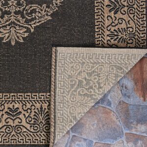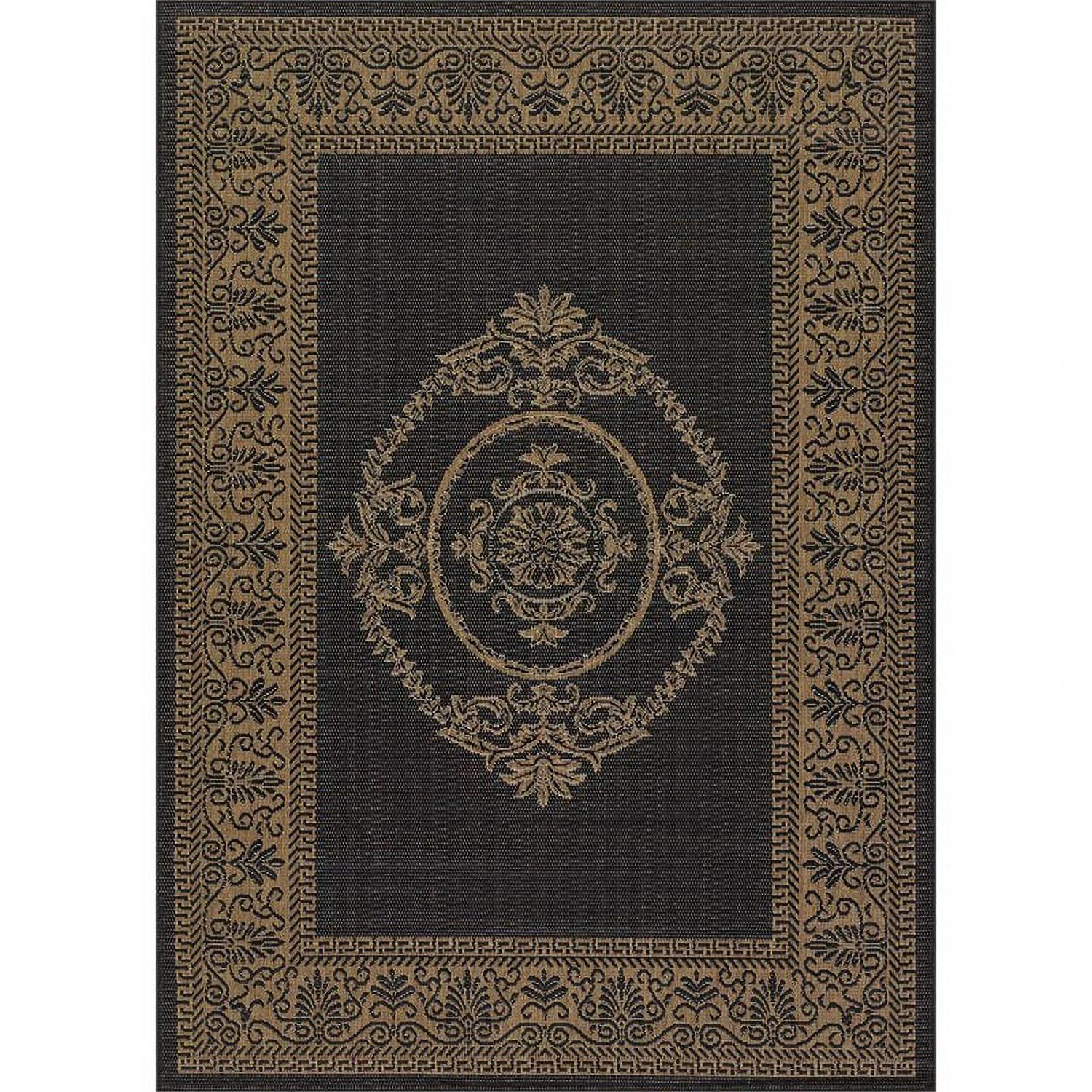 Couristan Recife Antique Medallion Indoor/ Outdoor Area Rug in Black-Cocoa: