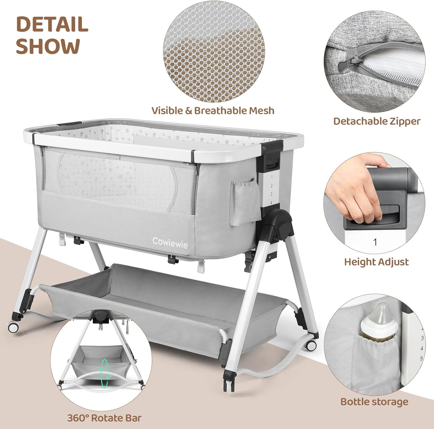Cowiewie 2 in 1 Baby Sleeper Bassinet Light Gray