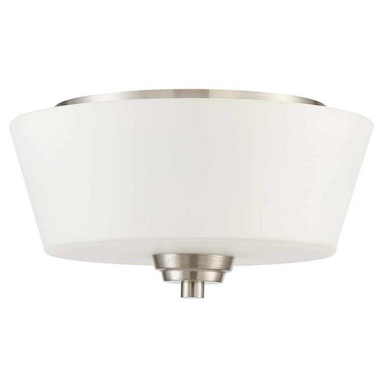 From closets to hallways to the living room, the Craftmade Grace 41982 2 Light Flushmount is an effortless addition to any area of your home. This round light fixture boasts a sleek modern design and comes in a selection of available hues to best match your room design. The base is crafted from sturdy steel and mounts neatly to the ceiling. A round frosted glass shade ensconces the bulbs, featuring a stepped metal cap. This unit requires two 60 bulbs (not included).