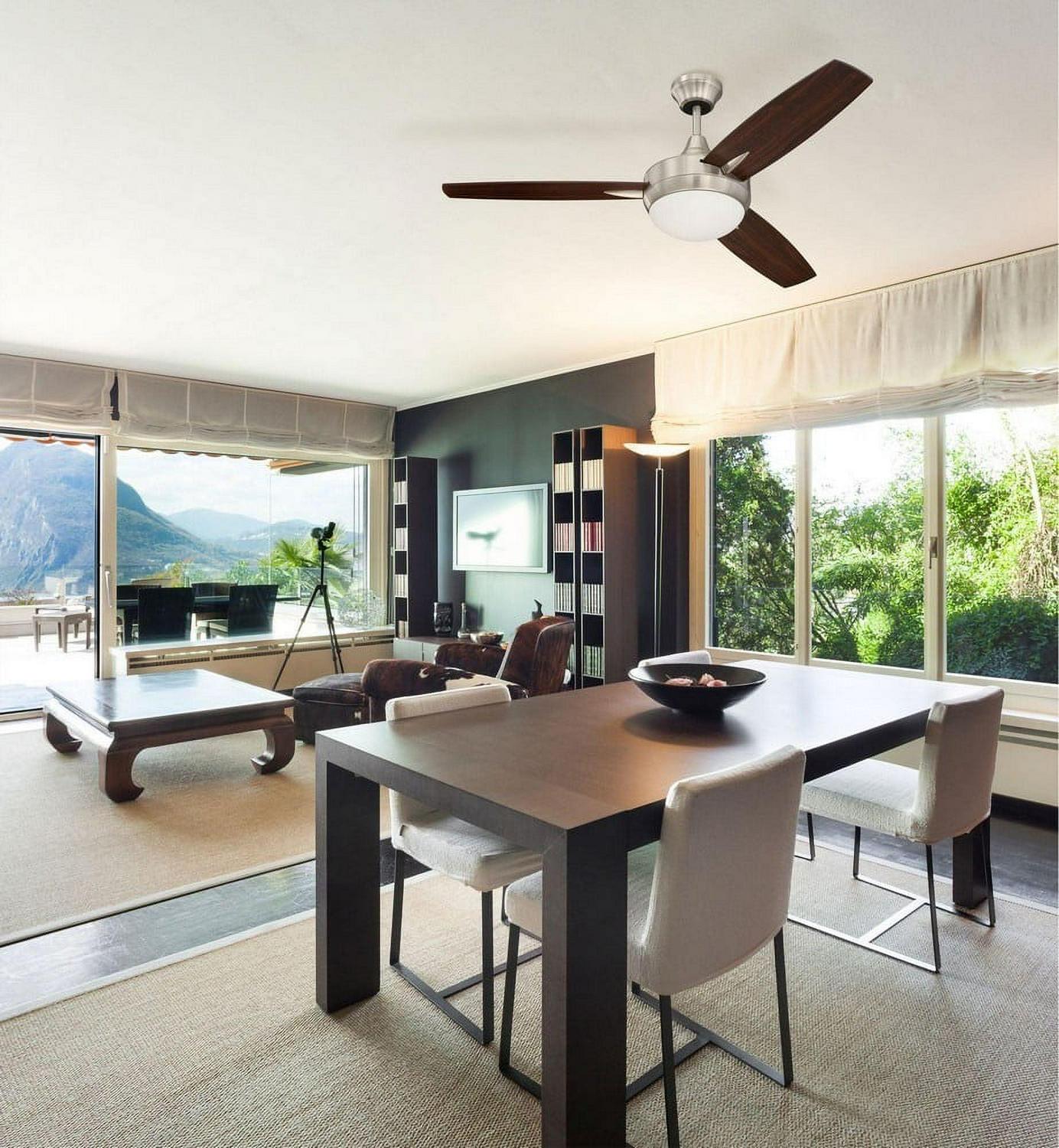 Modern and minimalist, the Targas 52″ features a sleek tri-blade design, 4-speed, reversible motor with dimmable LED lighting and hard-wired speed and light control. Models with -UCI include Remotes.